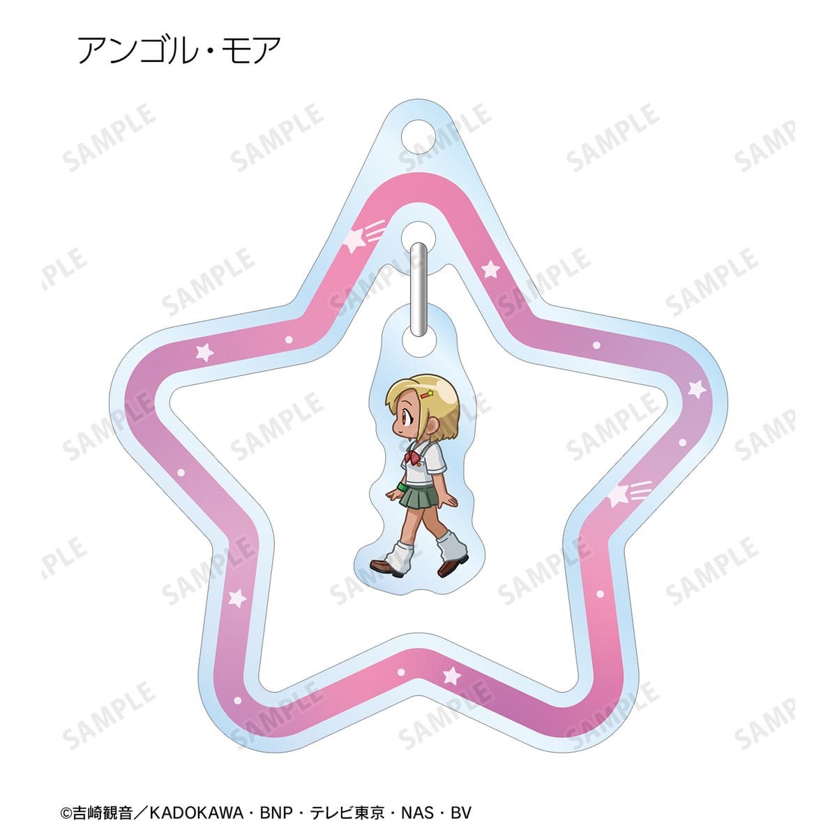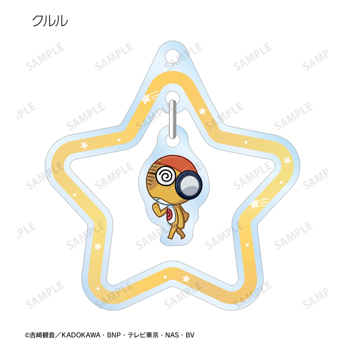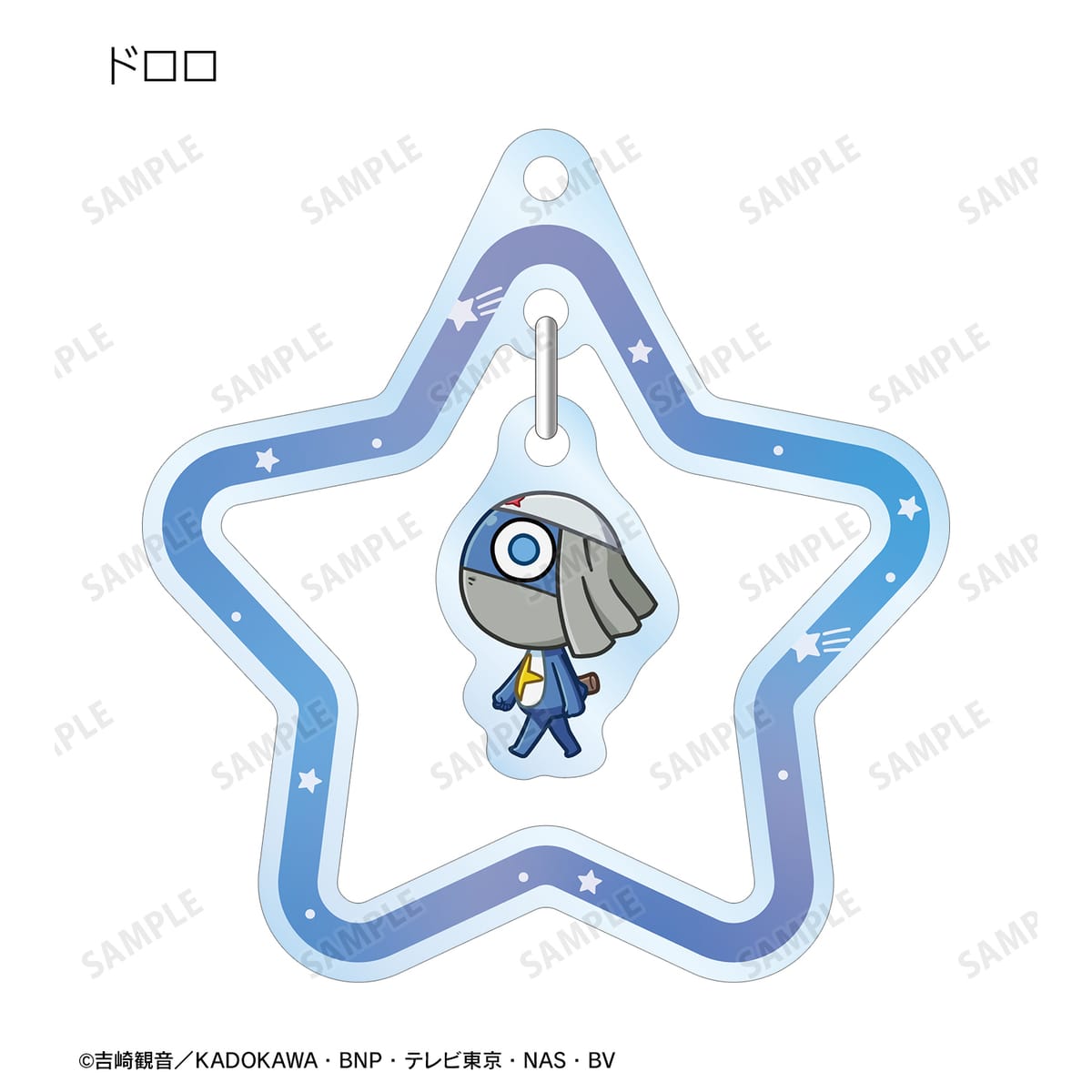 ケロロ、タママ、ギロロ、クルル、ドロロ、日向 冬樹、日向 夏美、西澤 桃華、サブロー、東谷 小雪、アンゴル・モアが歩いているちびキャラを新たに描き起こし、ゆらゆら動くアクリルキーホルダーに仕上げました。