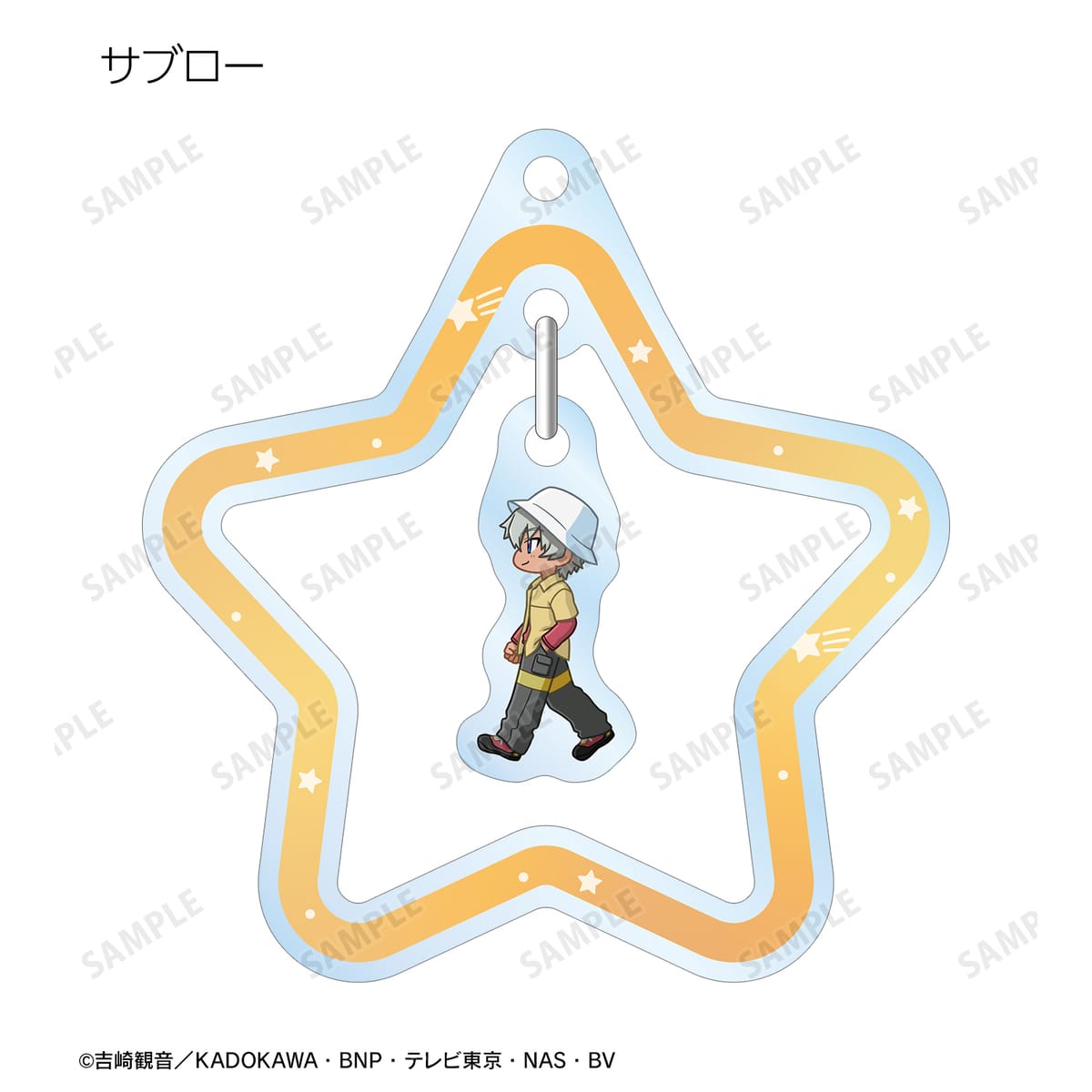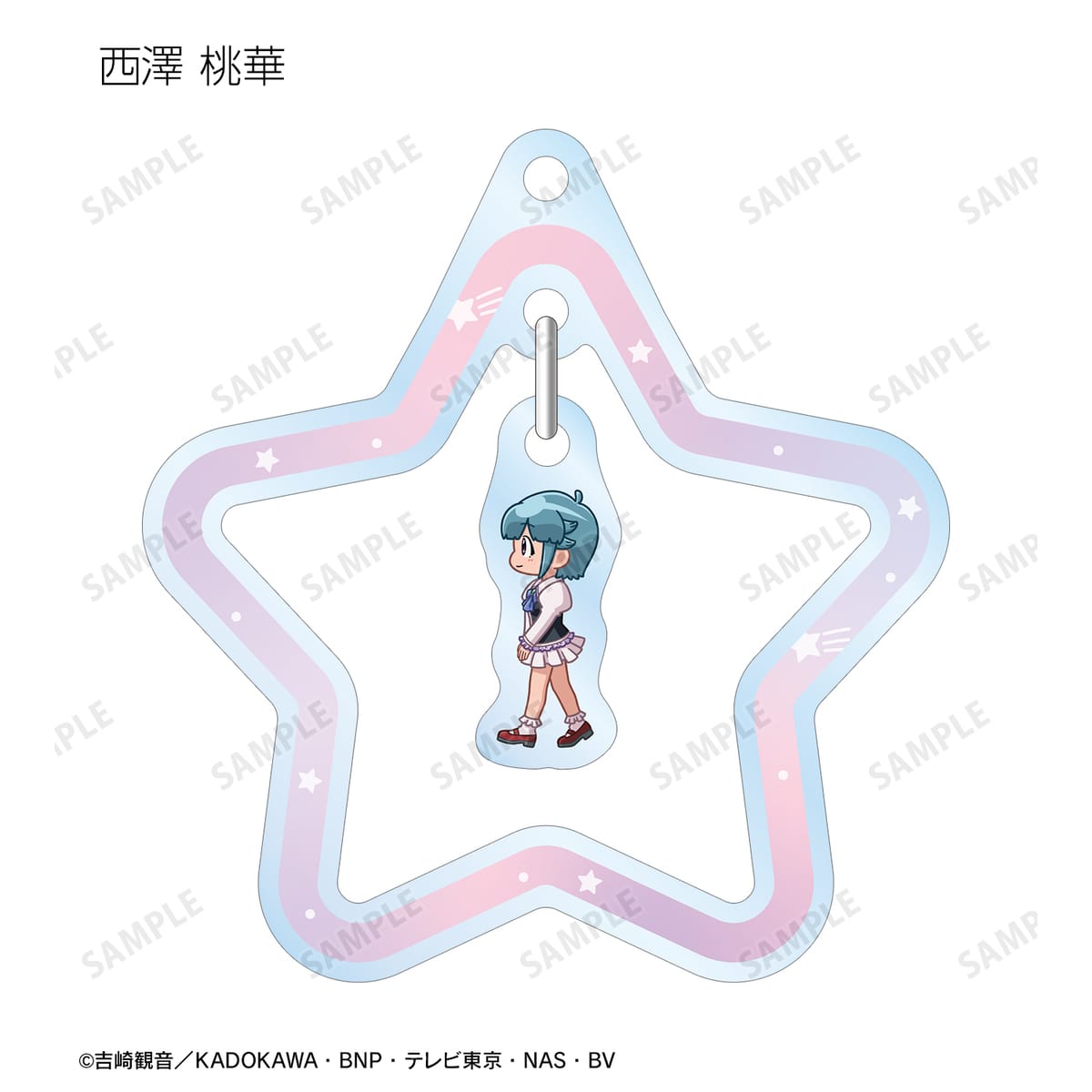 ケロロ、タママ、ギロロ、クルル、ドロロ、日向 冬樹、日向 夏美、西澤 桃華、サブロー、東谷 小雪、アンゴル・モアが歩いているちびキャラを新たに描き起こし、ゆらゆら動くアクリルキーホルダーに仕上げました。