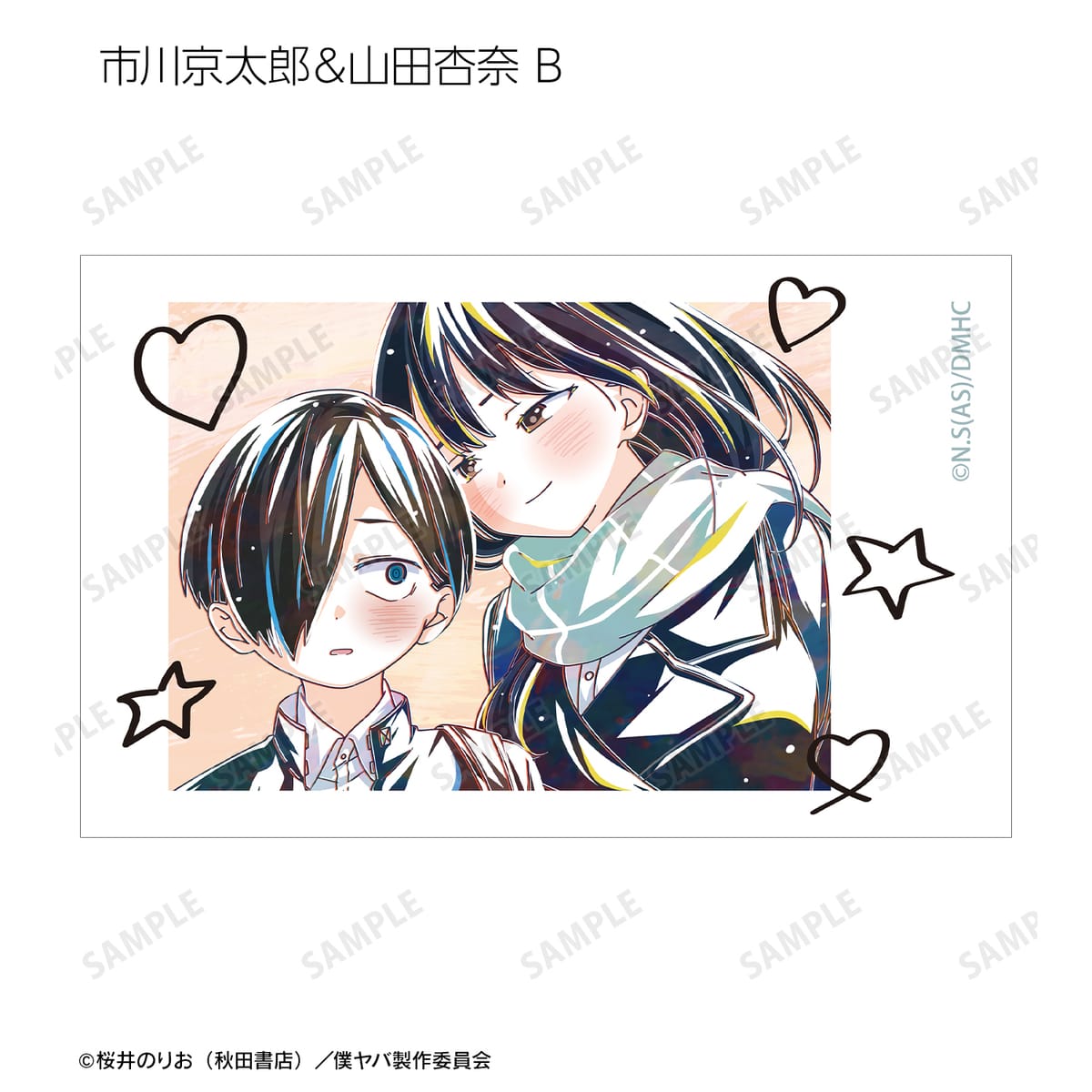 市川京太郎、山田杏奈のイラストを新たなタッチで魅力的に表現し、イラストカードに仕上げました。