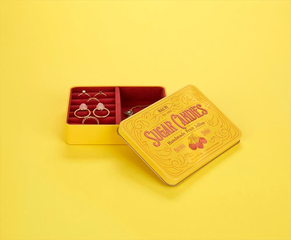 本物のキャンディ缶のようなデザインのジュエリーボックス