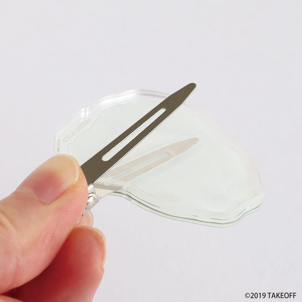 【素材】アクリル(本体)、金属、紙(台紙)【サイズ】本体:約W40×H50mm以内(クリップ部分を除く)、台紙:W72×H117mm【生産国】中国