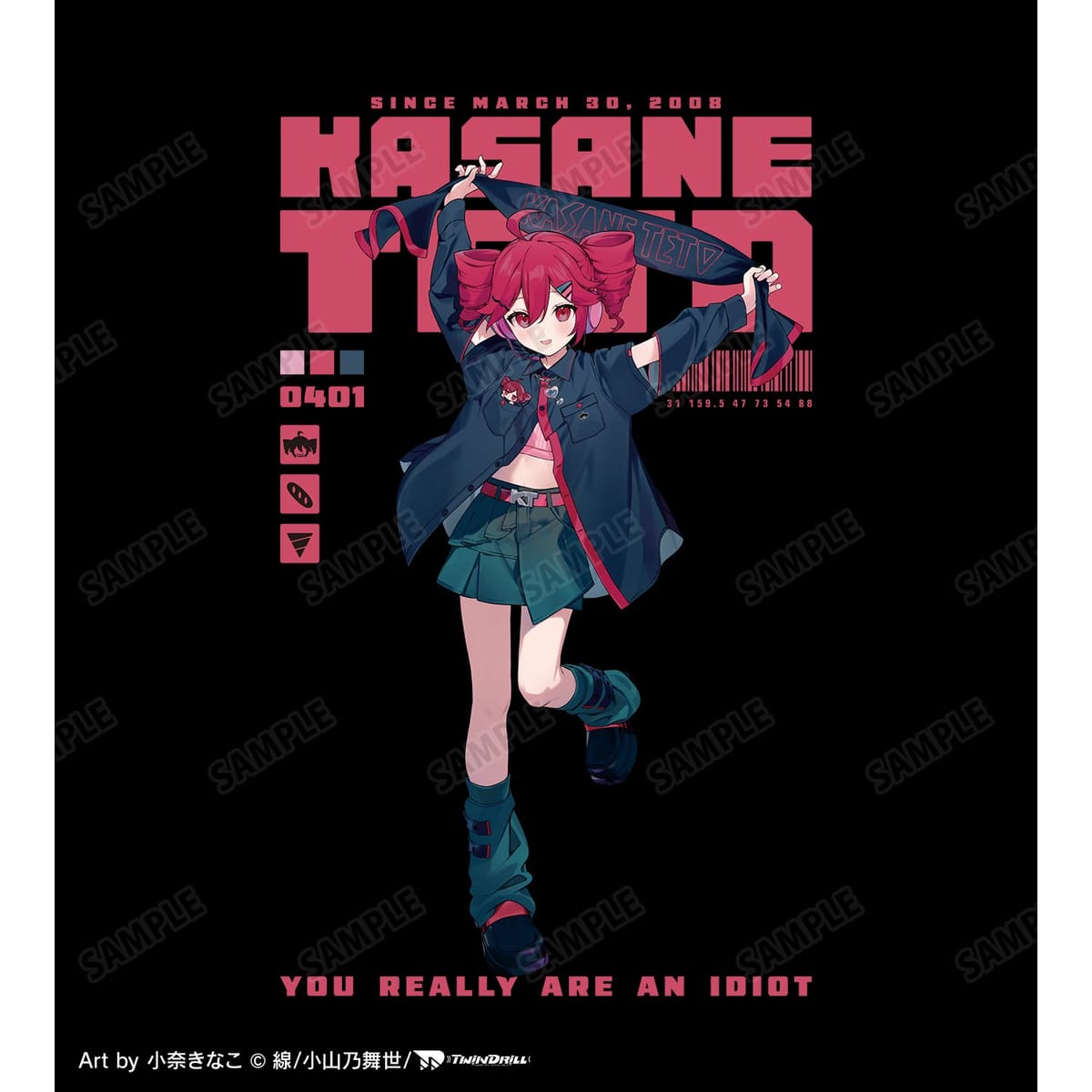 小奈きなこさん描き下ろしイラストの重音テト、モチーフをTシャツに仕上げました。