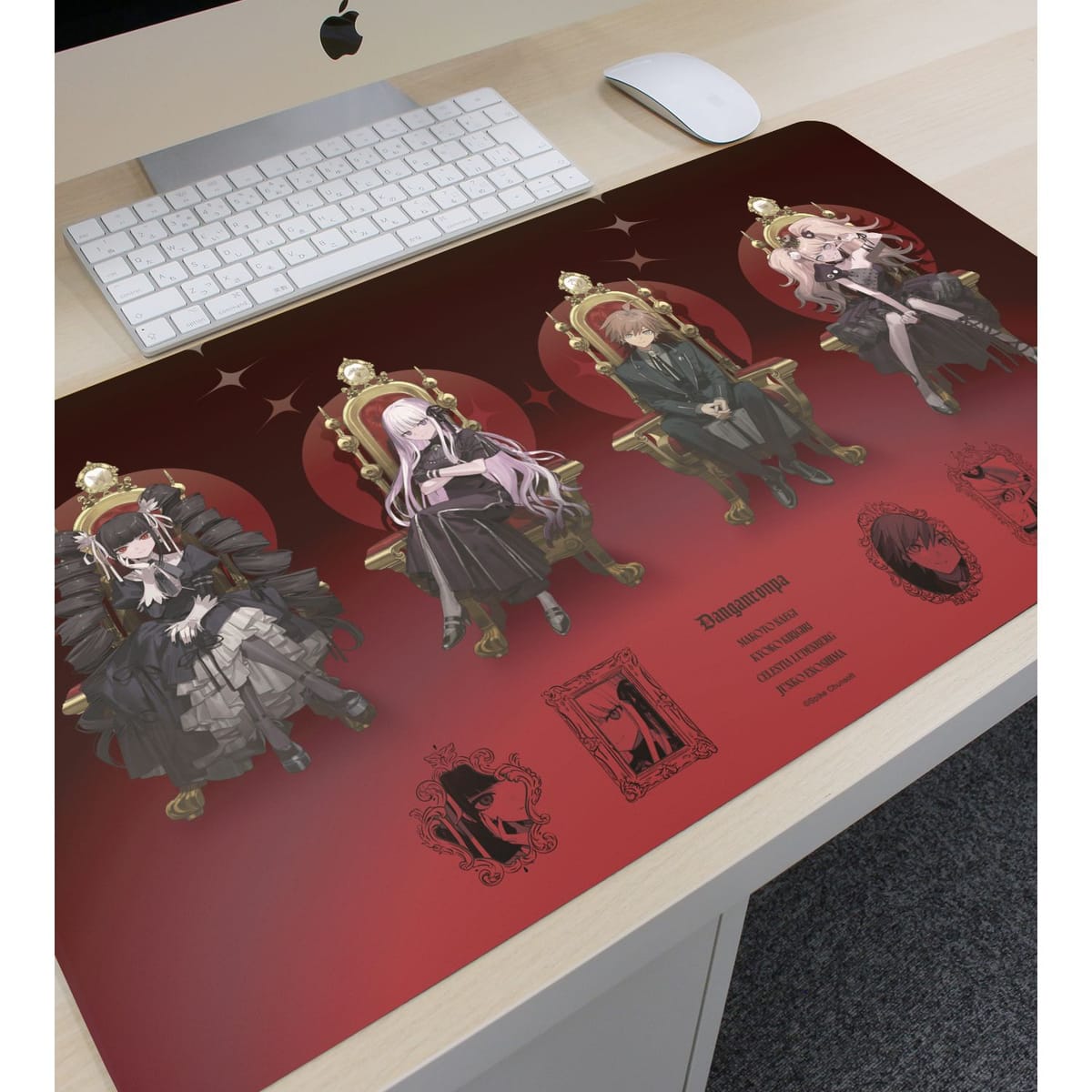 『ダンガンロンパシリーズ』×「およ」のコラボレーションアイテム「およさんイラスト 集合 A 玉座ver. マルチデスクマット」の登場です。