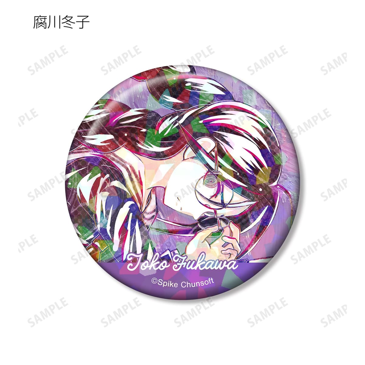 霧切響子、十神白夜、腐川冬子、セレスティア・ルーデンベルク、朝日奈葵、石丸清多夏、大神さくら、戦刃むくろのイラストを新たなタッチで魅力的に表現し、ホログラム加工を施した缶バッジに仕上げました。