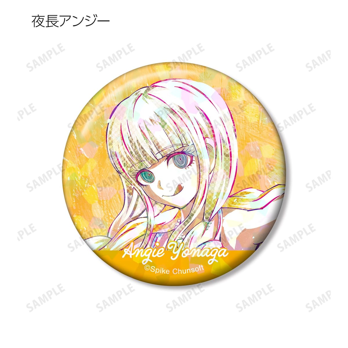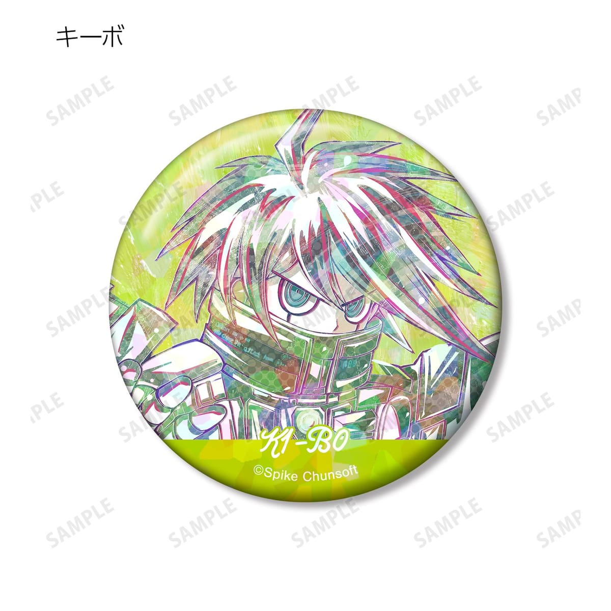 赤松楓、キーボ、最原終一、真宮寺是清、春川魔姫、星竜馬、夢野秘密子、夜長アンジーのイラストを新たなタッチで魅力的に表現し、ホログラム加工を施した缶バッジに仕上げました。