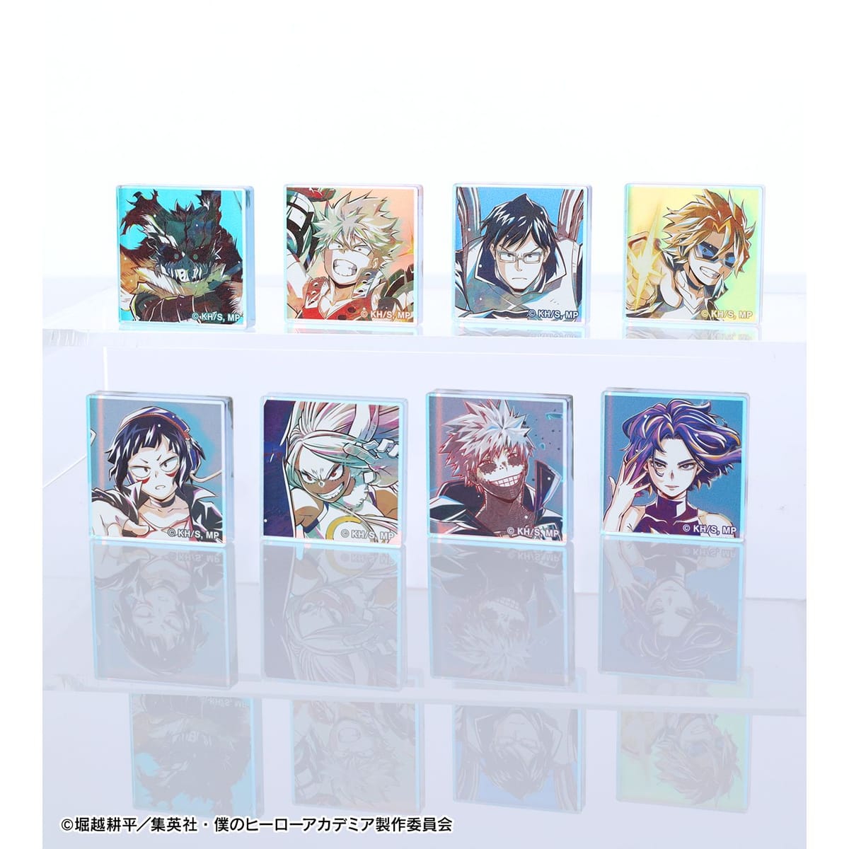 緑谷出久、爆豪勝己、飯田天哉、上鳴電気、耳郎響香、ミルコ、荼毘、レディ・ナガンのビジュアルを新たなタッチで魅力的に表現し、オーロラアクリルタイルに仕上げました。