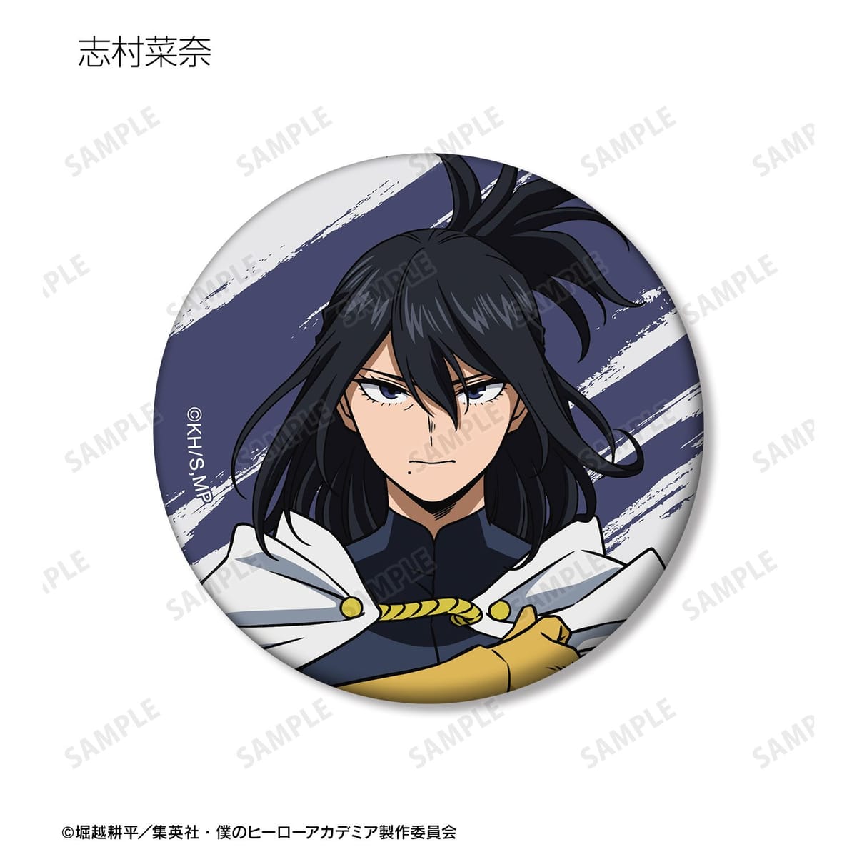オールマイト、エンデヴァー、ベストジーニスト、エッジショット、スターアンドストライプ、ワン・フォー・オール 3代目継承者、四ノ森避影、志村菜奈、死柄木弔、トガヒミコのビジュアルをマットな手触りの缶バッジに仕上げました。