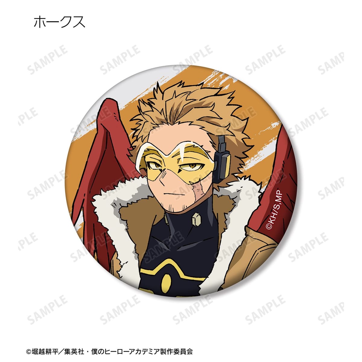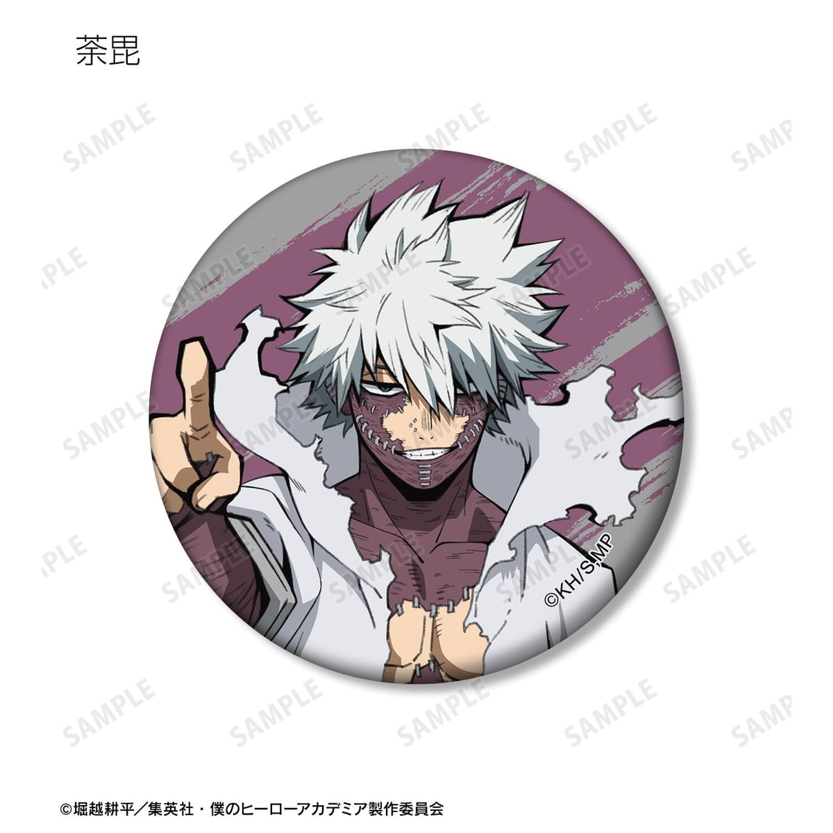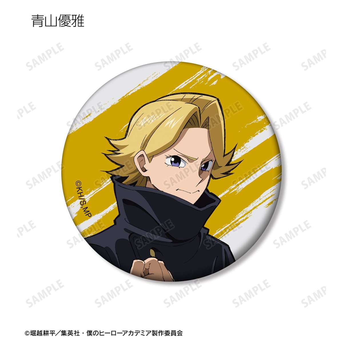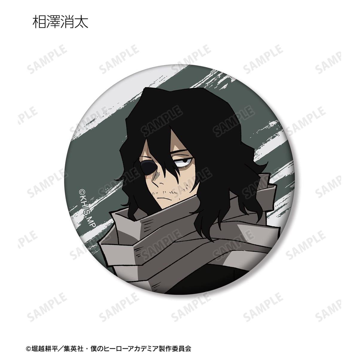 青山優雅、相澤消太、ホークス、ミルコ、与一、ワン・フォー・オール 2代目継承者、万縄大悟郎、煙、オール・フォー・ワン、荼毘のビジュアルをマットな手触りの缶バッジに仕上げました。