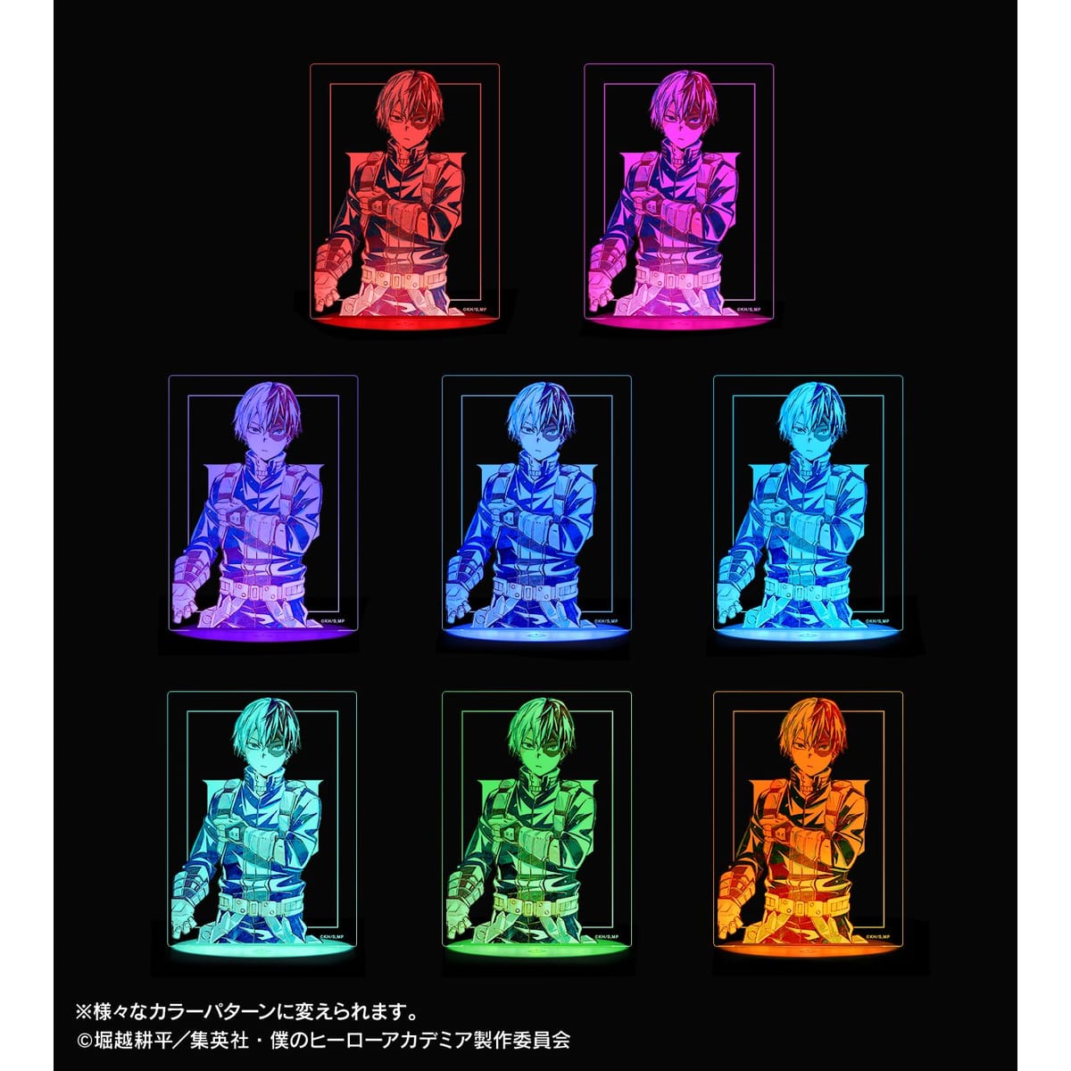 轟焦凍のビジュアルを新たなタッチで魅力的に表現し、ライトアップするアクリルスタンドに仕上げました。