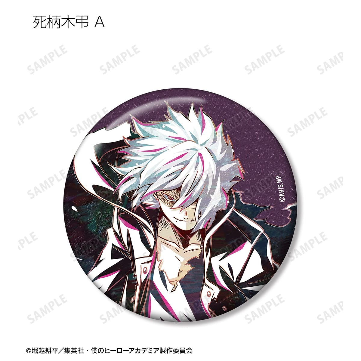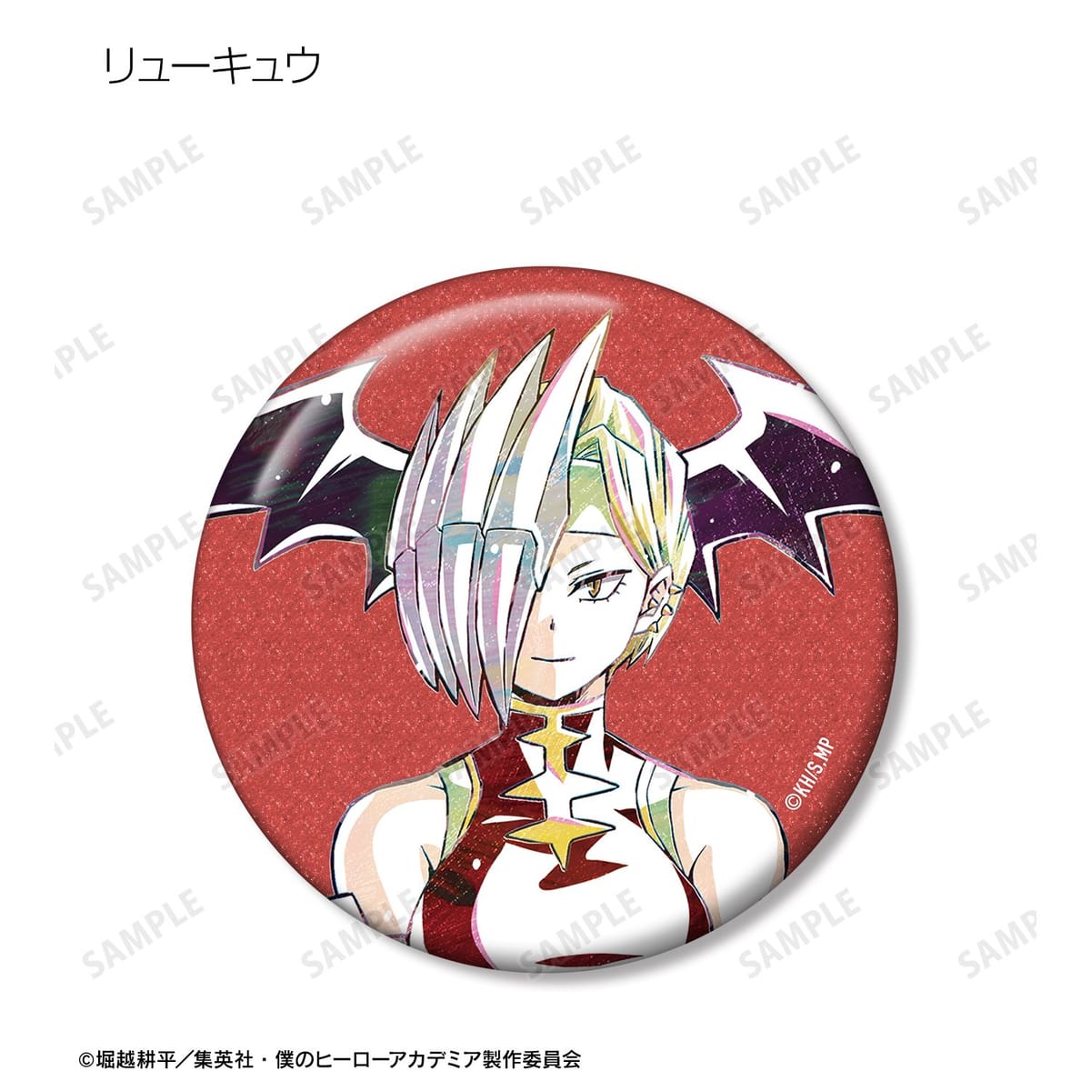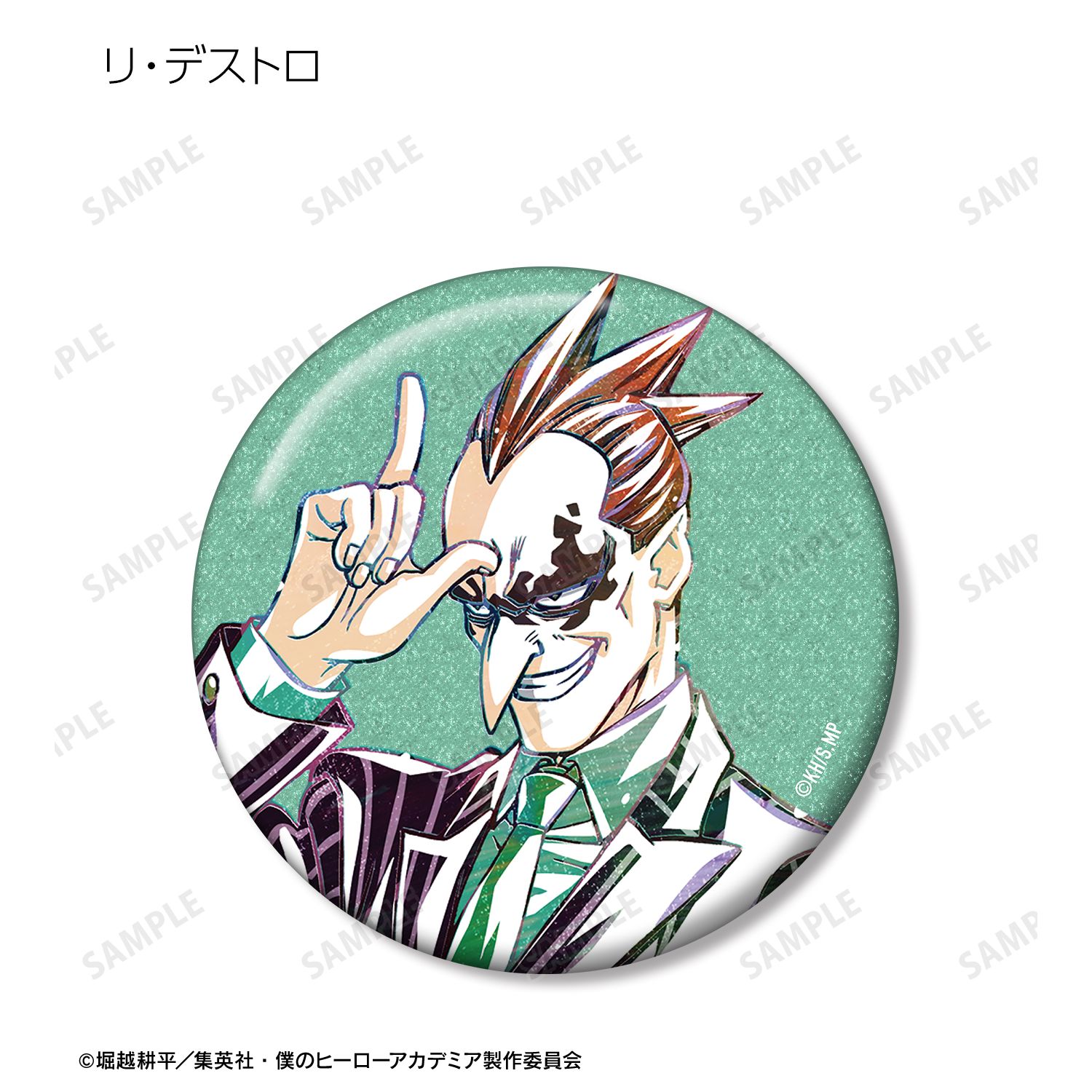 緑谷出久、蛙吹梅雨、物間寧人、拳藤一佳、通形ミリオ、オールマイト、リューキュウ、死柄木弔、リ・デストロのビジュアルを新たなタッチで魅力的に表現し、グリッター加工を施した缶バッジに仕上げました。