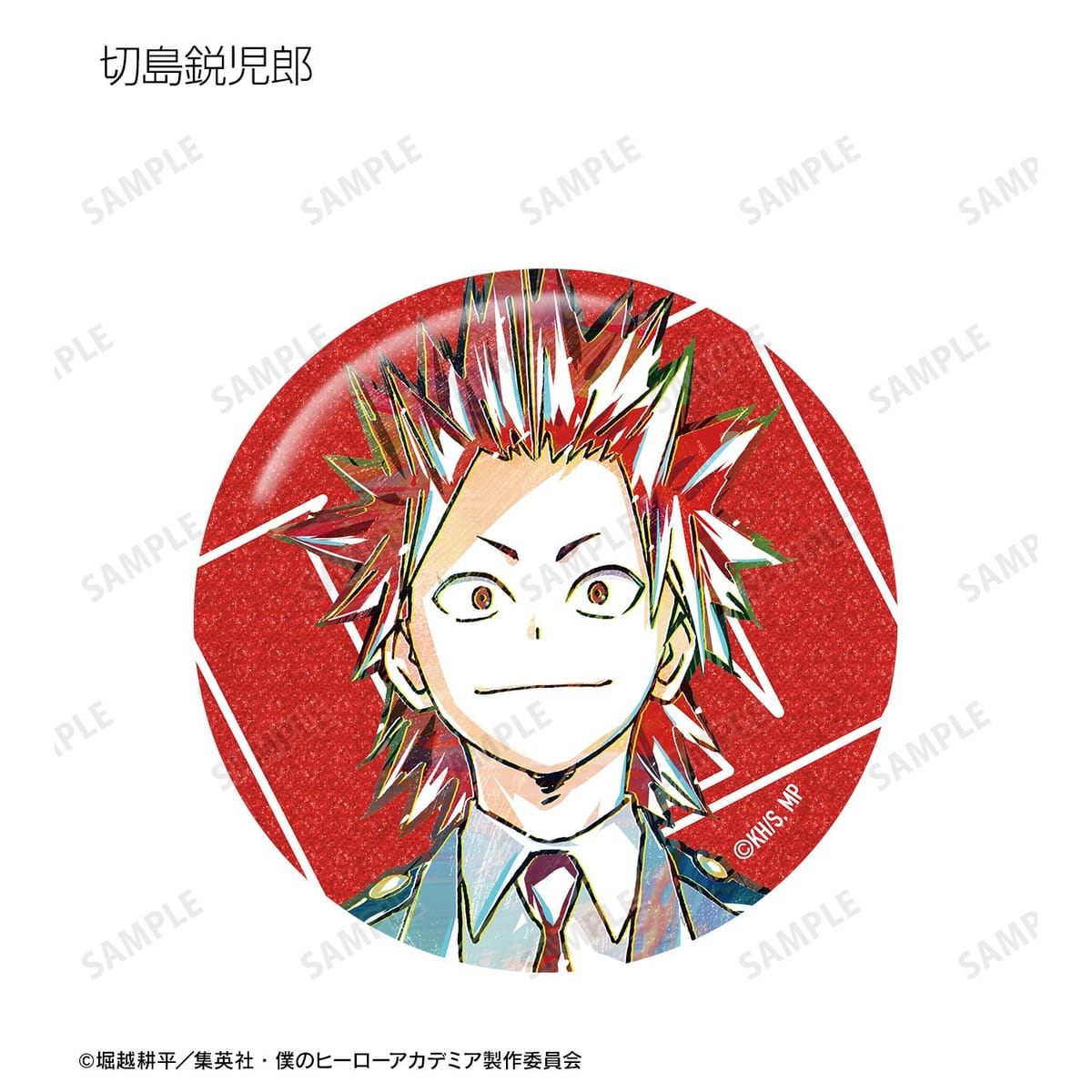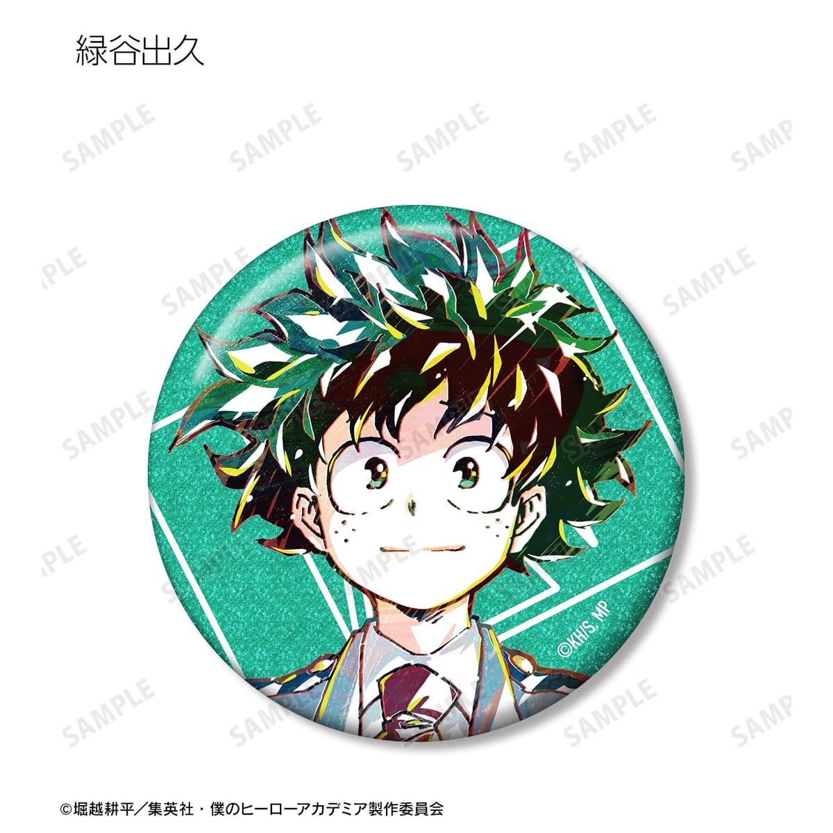 緑谷出久、爆豪勝己、麗日お茶子、轟焦凍、切島鋭児郎、上鳴電気、耳郎響香、相澤消太を新たなタッチで魅力的に表現し、グリッター加工を施した缶バッジに仕上げました。