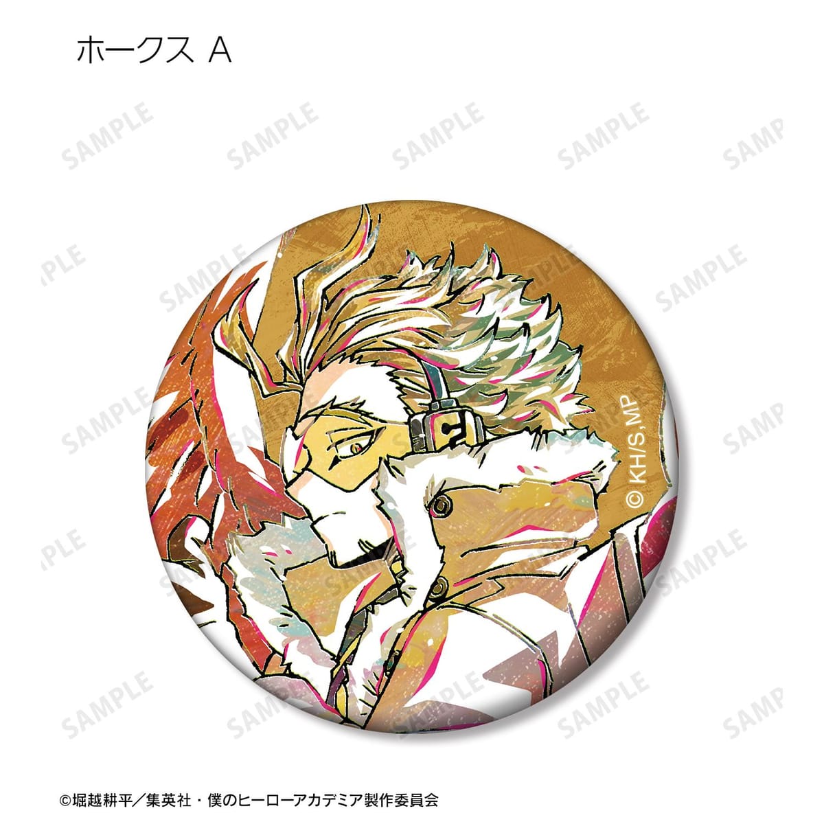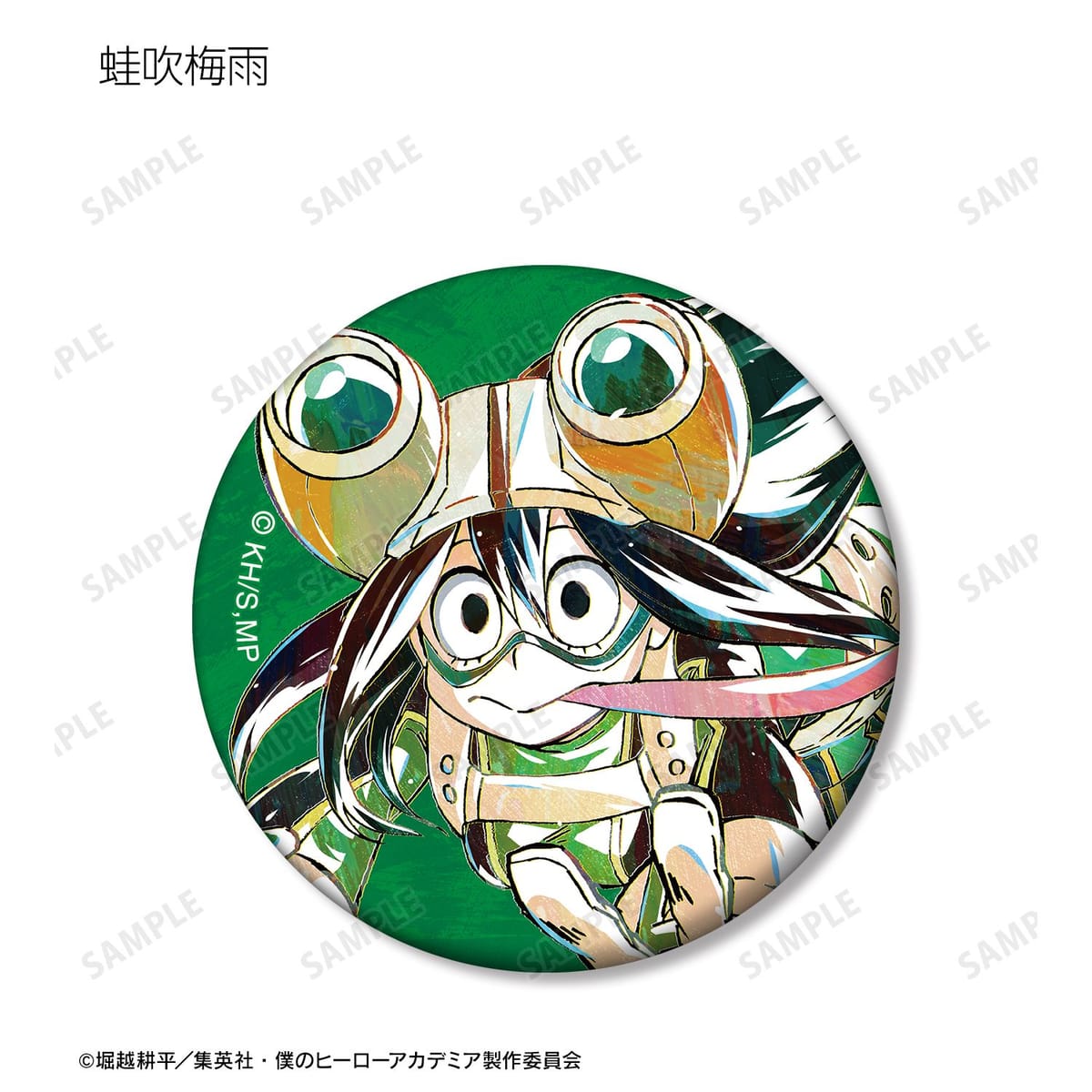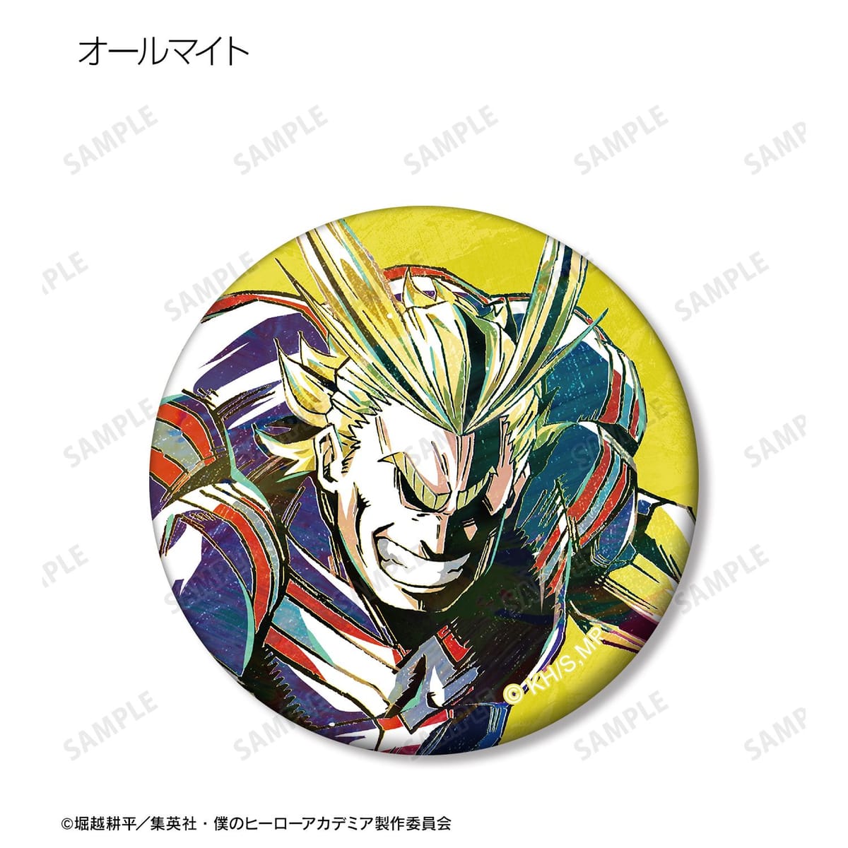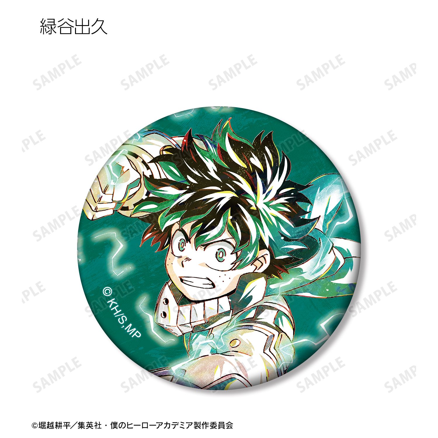 緑谷出久、麗日お茶子、蛙吹梅雨、常闇踏陰、物間寧人、拳藤一佳、オールマイト、ホークス、死柄木弔を新たなタッチで魅力的に表現し、マットな手触りの缶バッジに仕上げました。