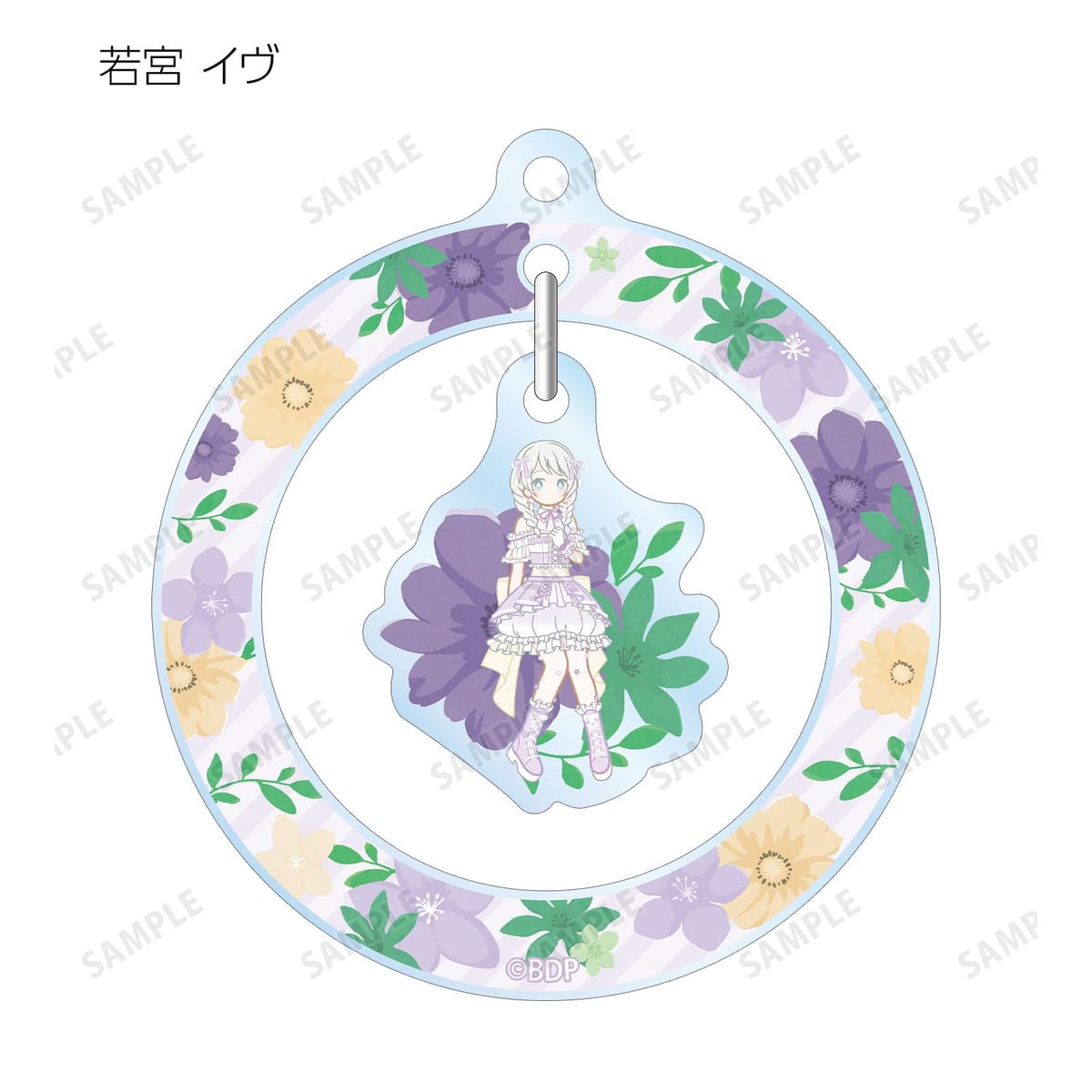 丸山 彩、氷川 日菜、白鷺 千聖、大和 麻弥、若宮 イヴ、高松 燈、千早 愛音、要 楽奈、長崎 そよ、椎名 立希のイラストをボタニカルデザインに落とし込んで繊細なタッチで新たに描き起こし、ゆらゆら動くアクリルキーホルダーに仕上げました。