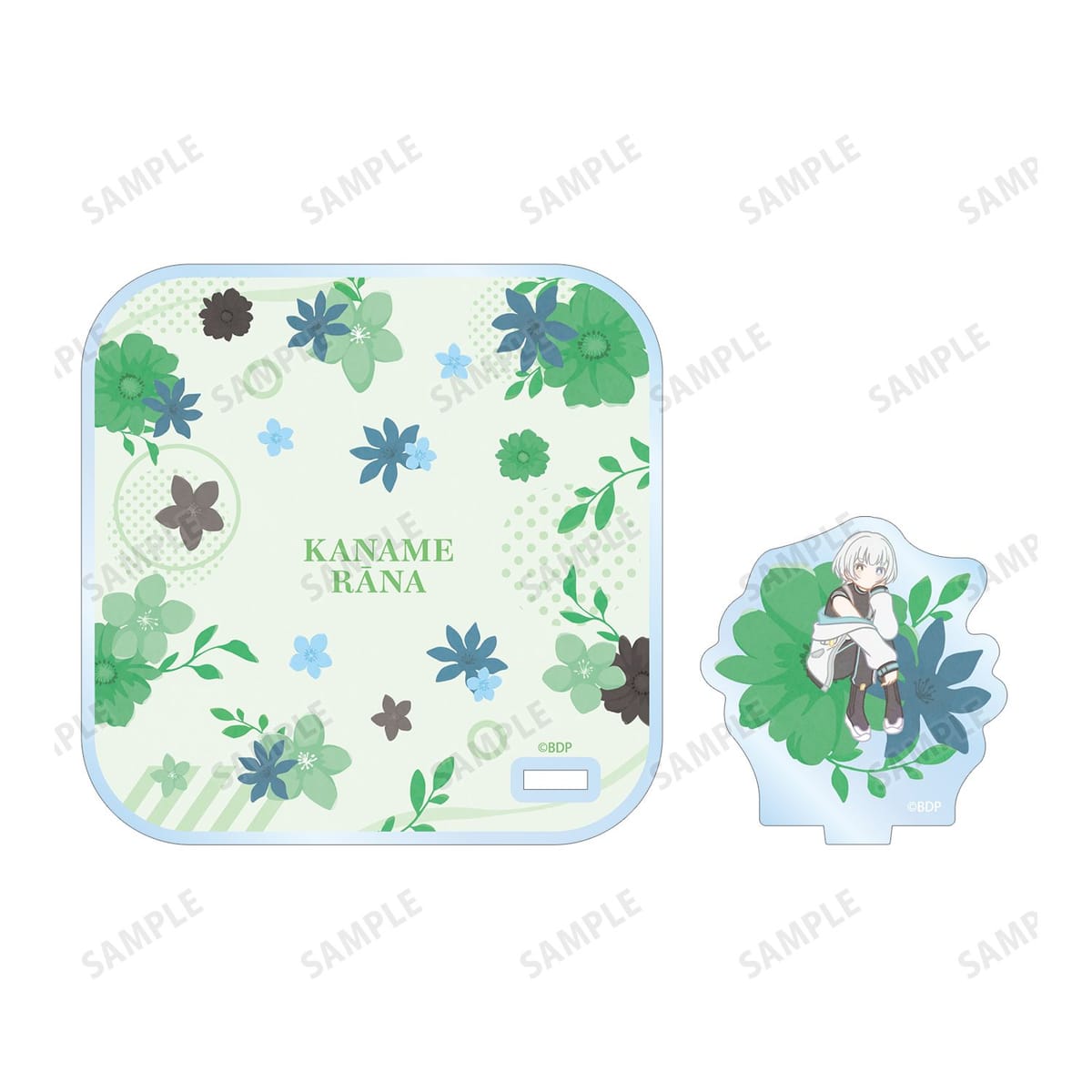 要 楽奈のイラストをボタニカルデザインに落とし込んで繊細なタッチで新たに描き起こし、アクリルスタンド付きコースターに仕上げました。