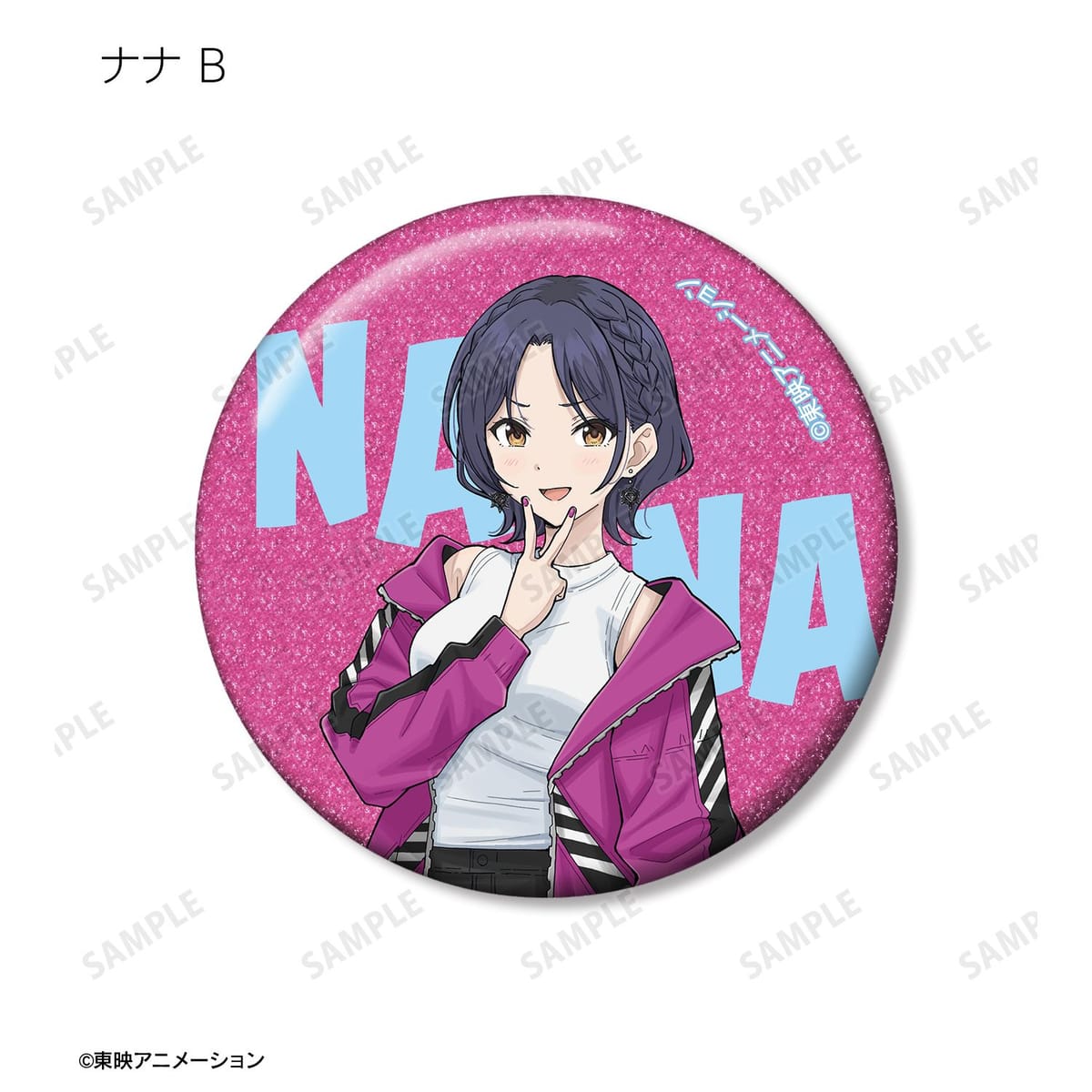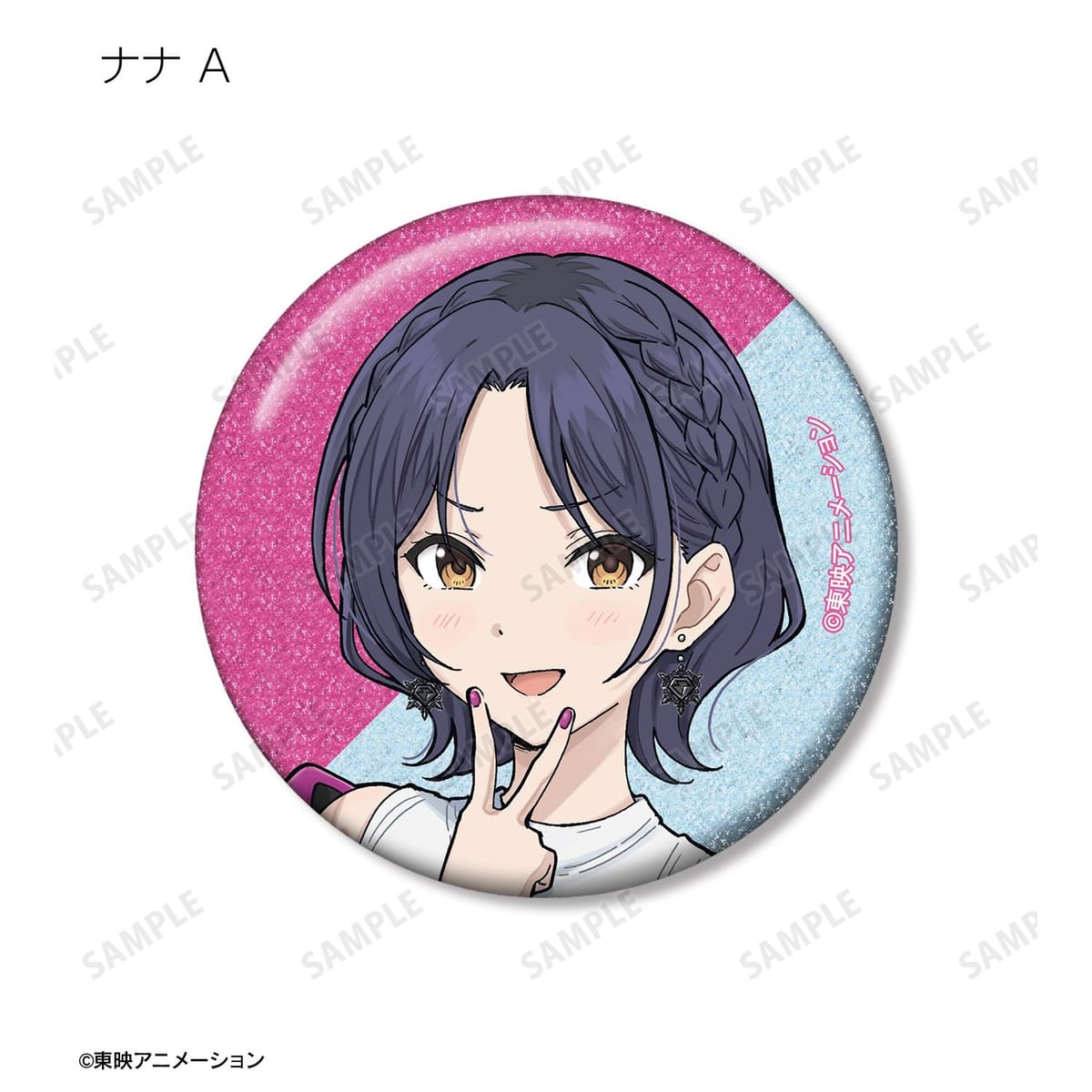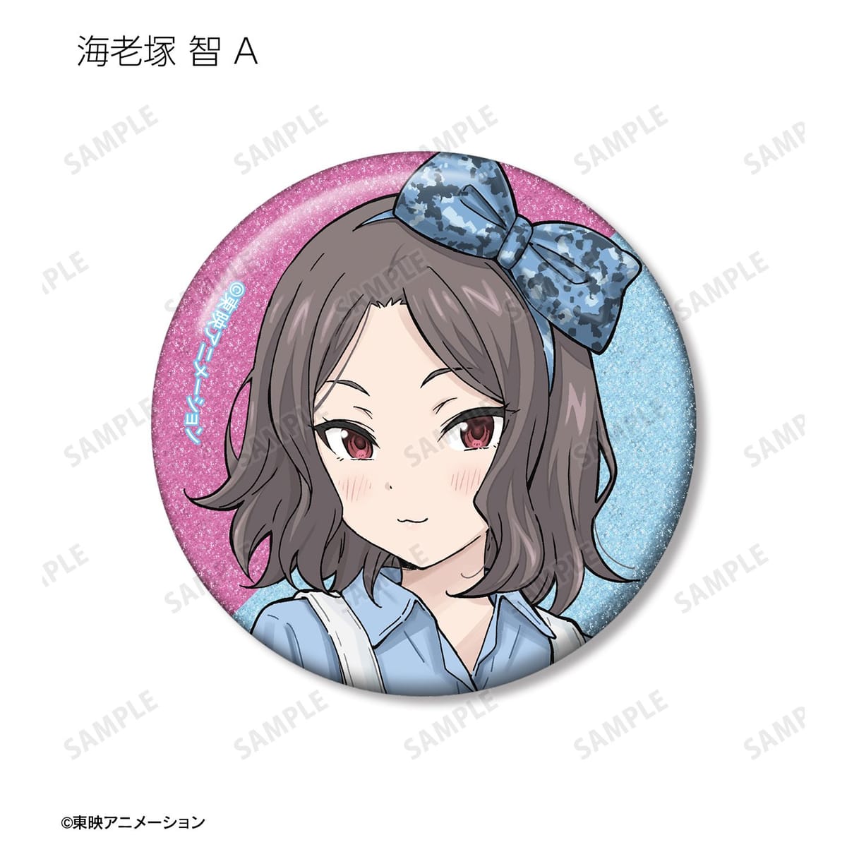 井芹 仁菜、河原木 桃香、安和 すばる、海老塚 智、ルパ、ヒナ、リン、ナナ、アイの描き下ろしイラストをグリッター加工を施した缶バッジに仕上げました。