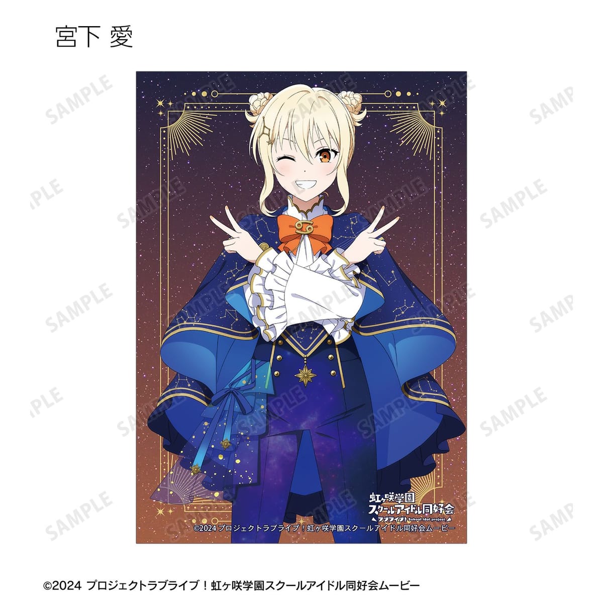 高咲 侑、上原歩夢、中須かすみ、桜坂しずく、朝香果林、宮下 愛、近江彼方、優木せつ菜、エマ・ヴェルデ、天王寺璃奈、三船栞子、ミア・テイラー、鐘 嵐珠の描き下ろしイラストをブロマイドに仕上げました。