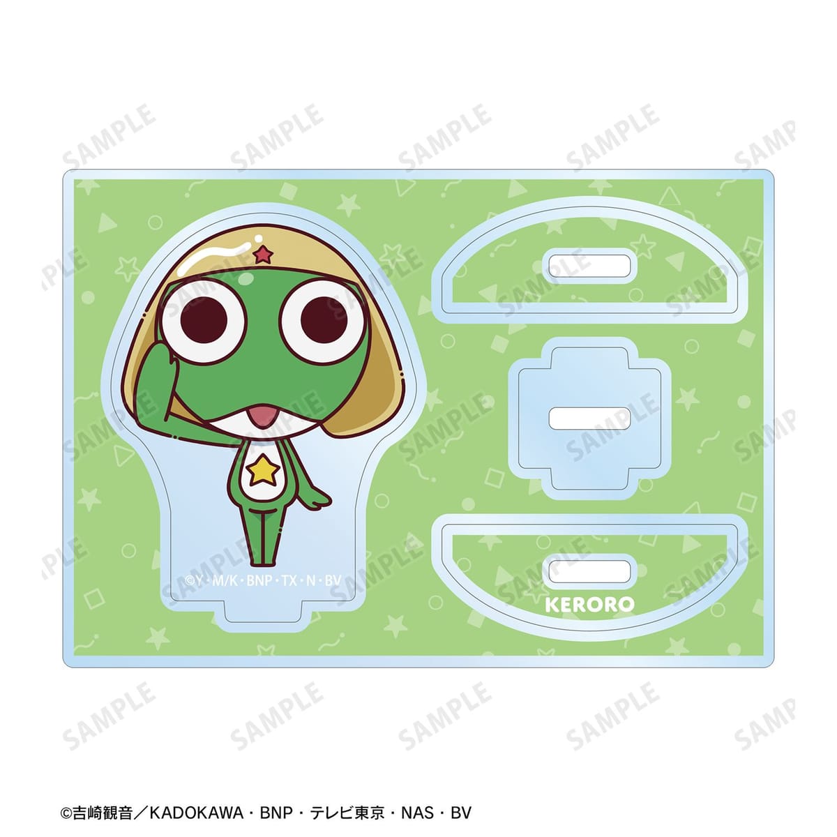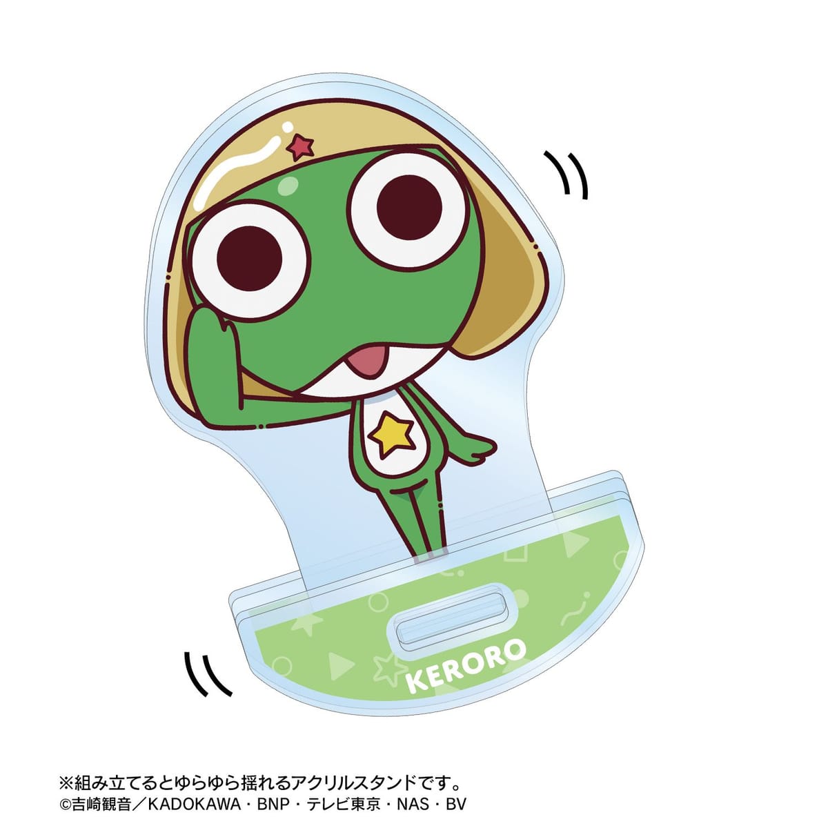ケロロがちょこんと立っているちびキャラを新たに描き起こし、ゆれるアクリルスタンドに仕上げました。
