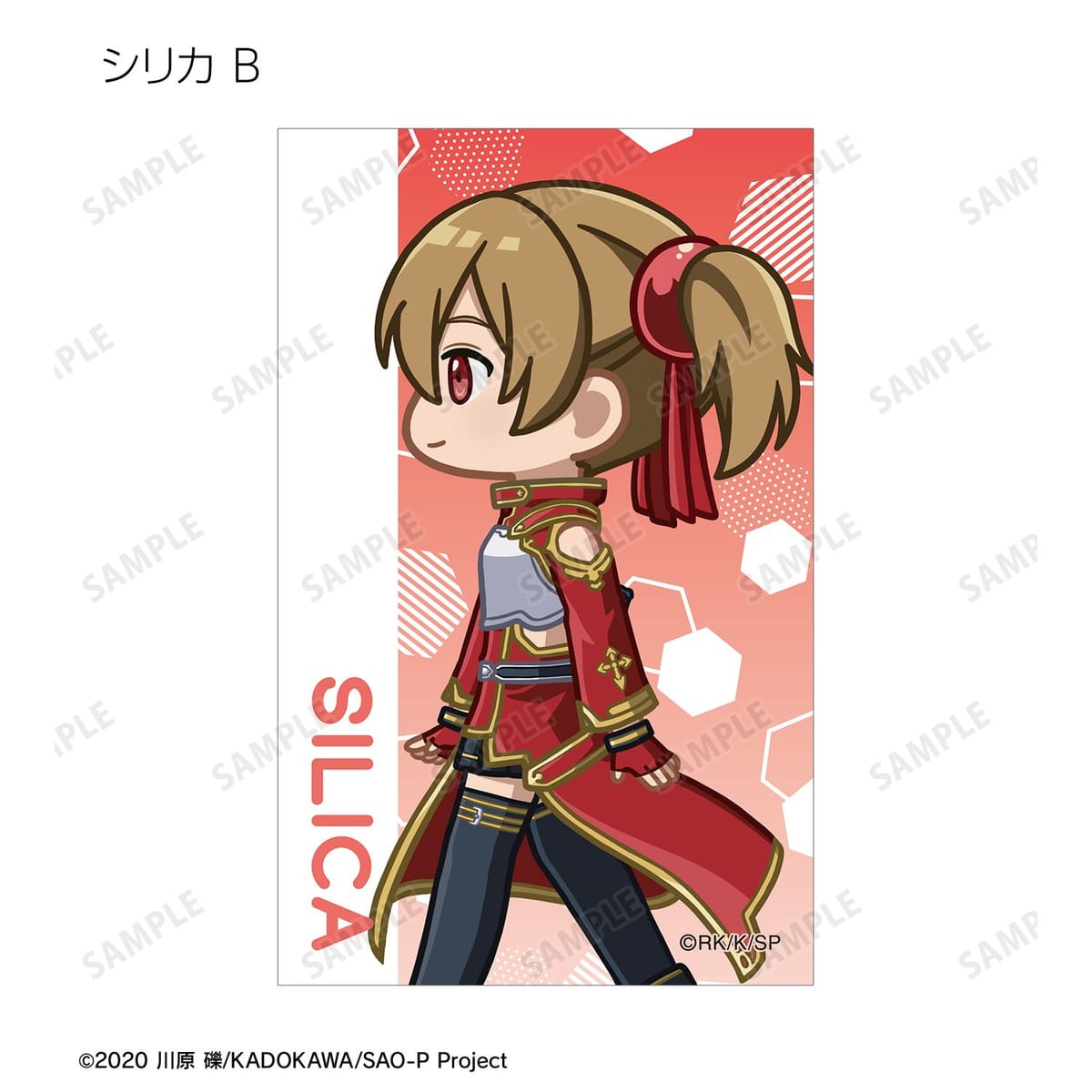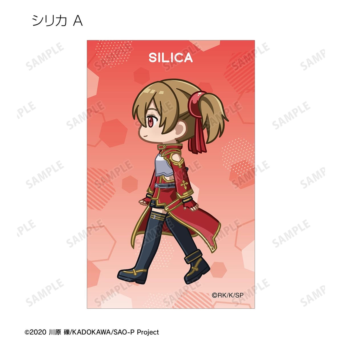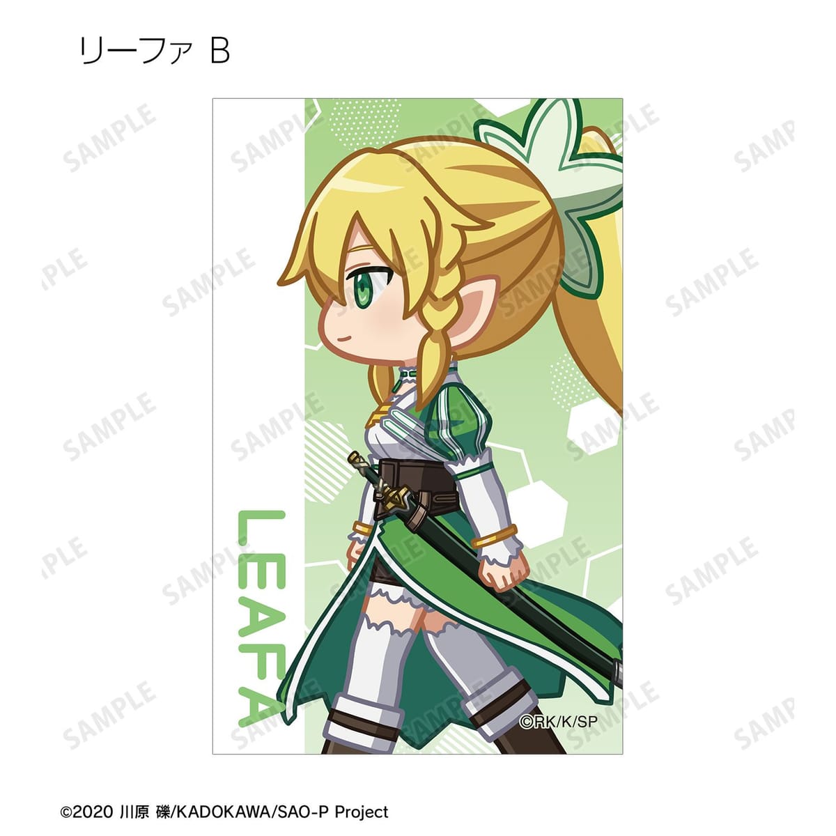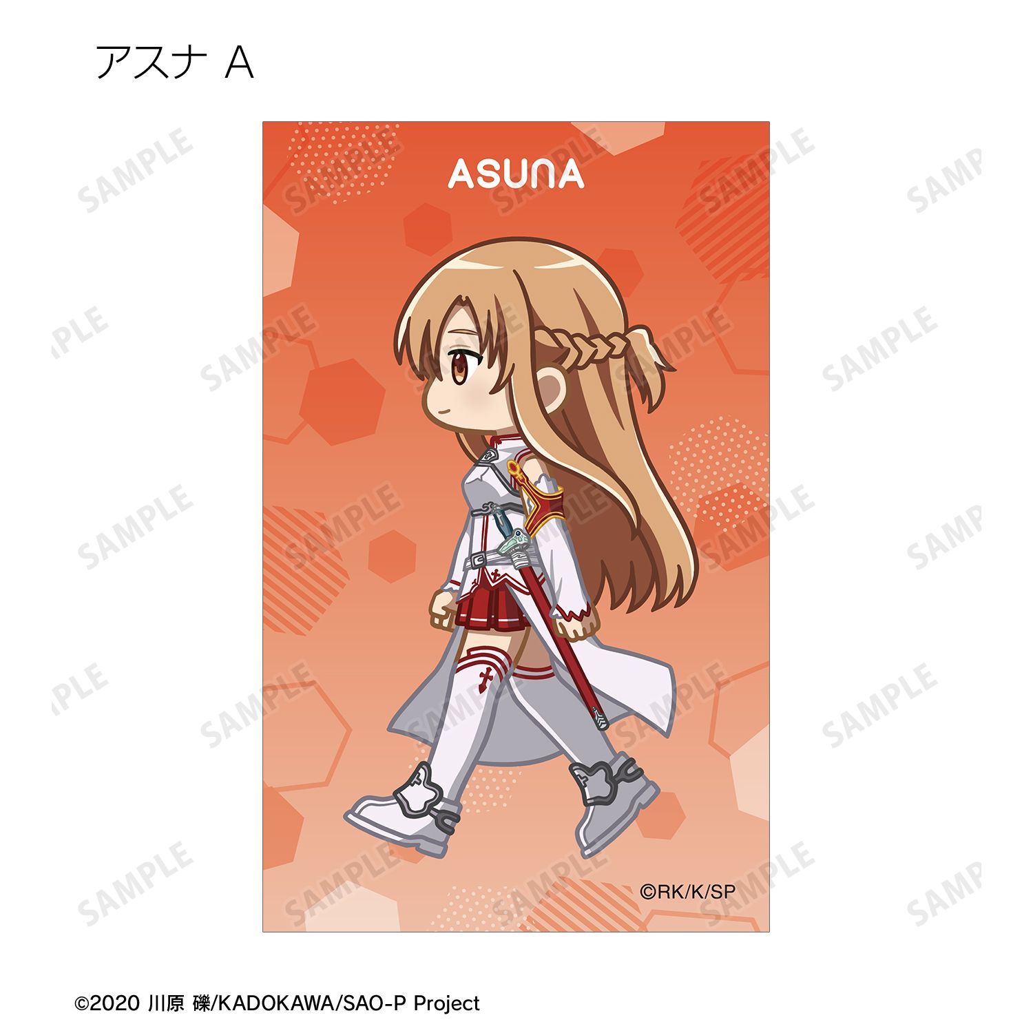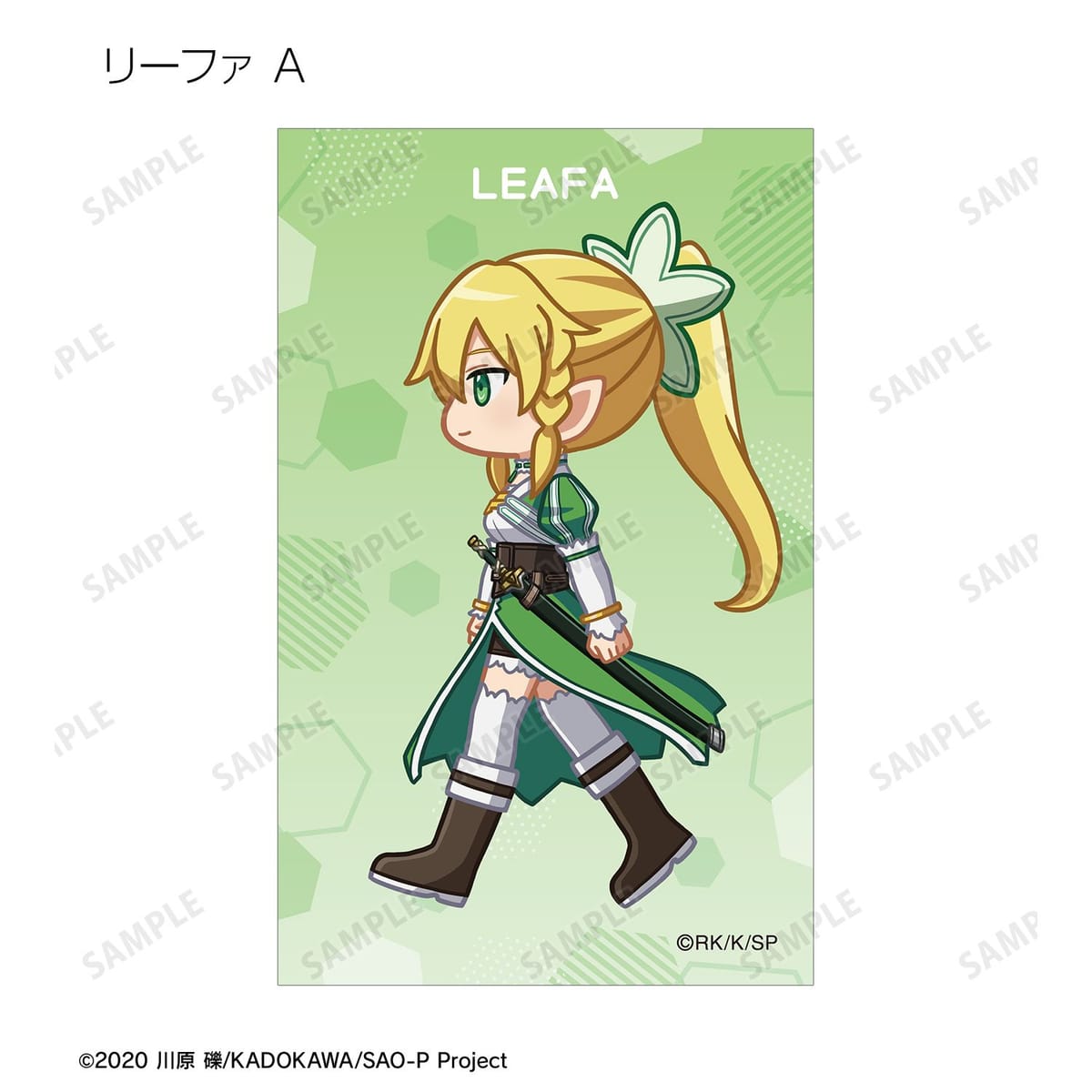 キリト、アスナ、ユイ、シリカ、リズベット、クライン、エギル、リーファ、シノン、ユウキ、ユージオ、アリス、ミトが歩いているちびキャラを新たに描き起こし、イラストカードに仕上げました。