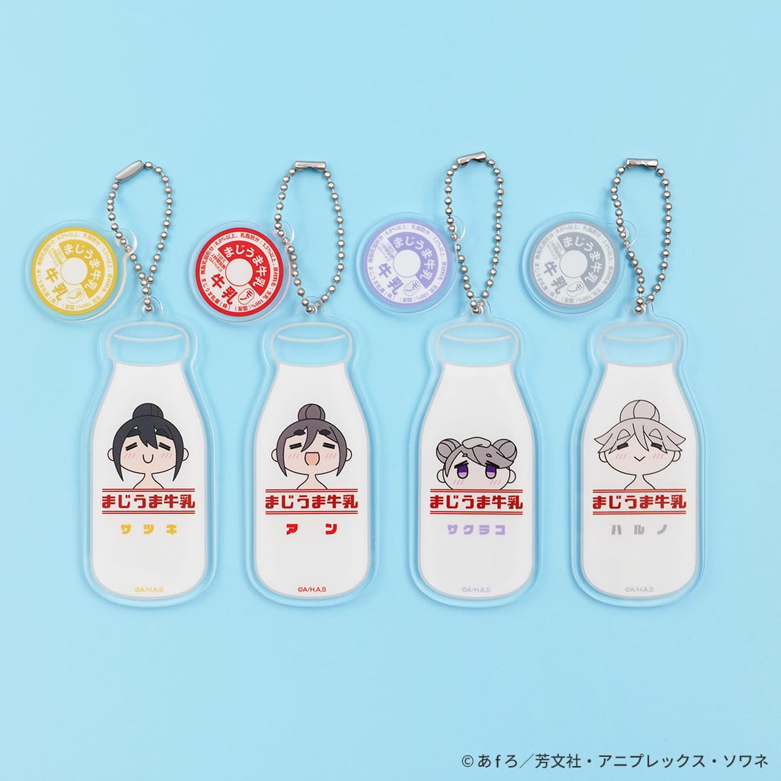 牛乳瓶と蓋をイメージしてデザインしています。お気に入りのリュックやバッグに付けたり、温泉などに行くときの目印にも!