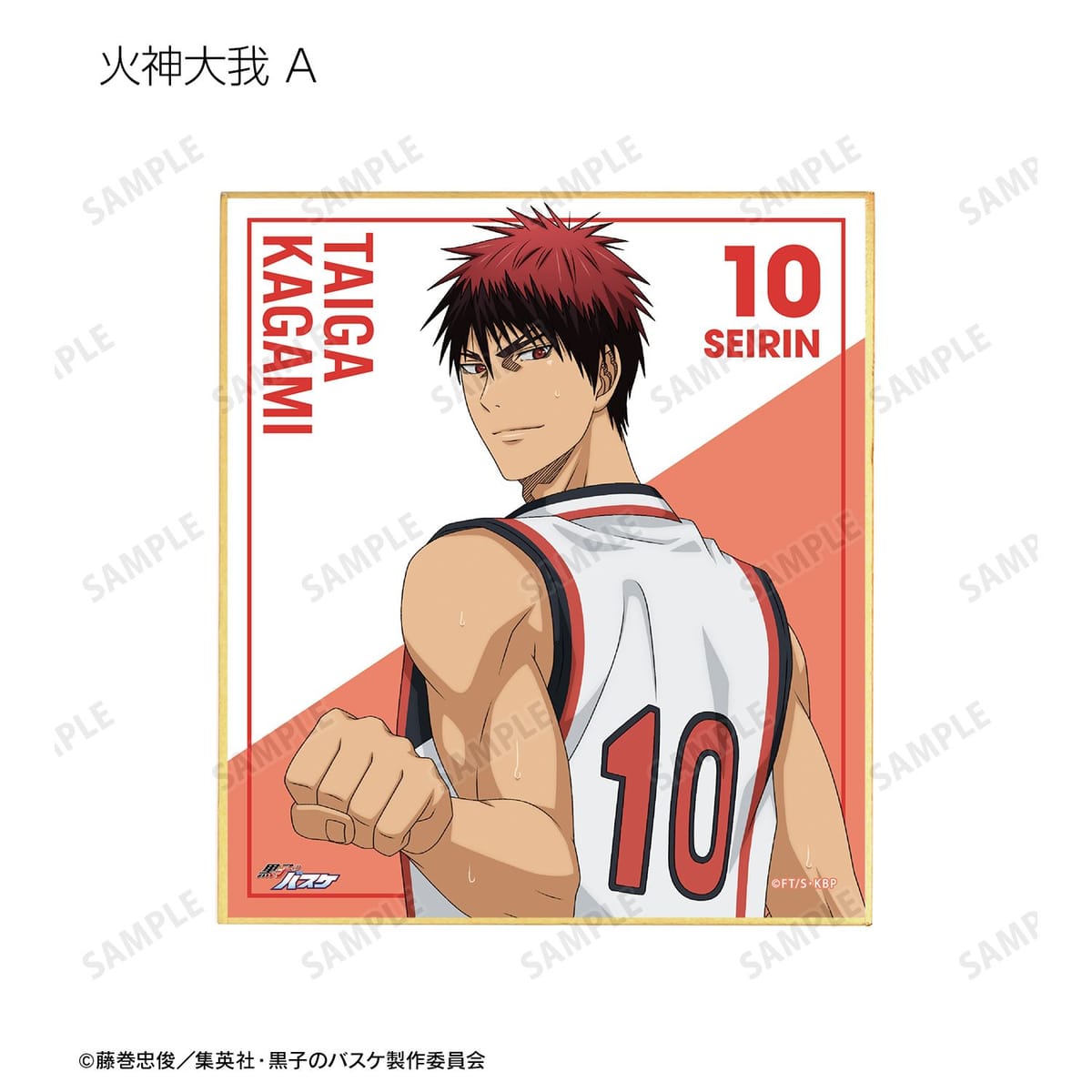 黒子テツヤ、火神大我、黄瀬涼太、緑間真太郎、青峰大輝、紫原 敦、赤司征十郎の描き下ろしイラストをミニ色紙に仕上げました。