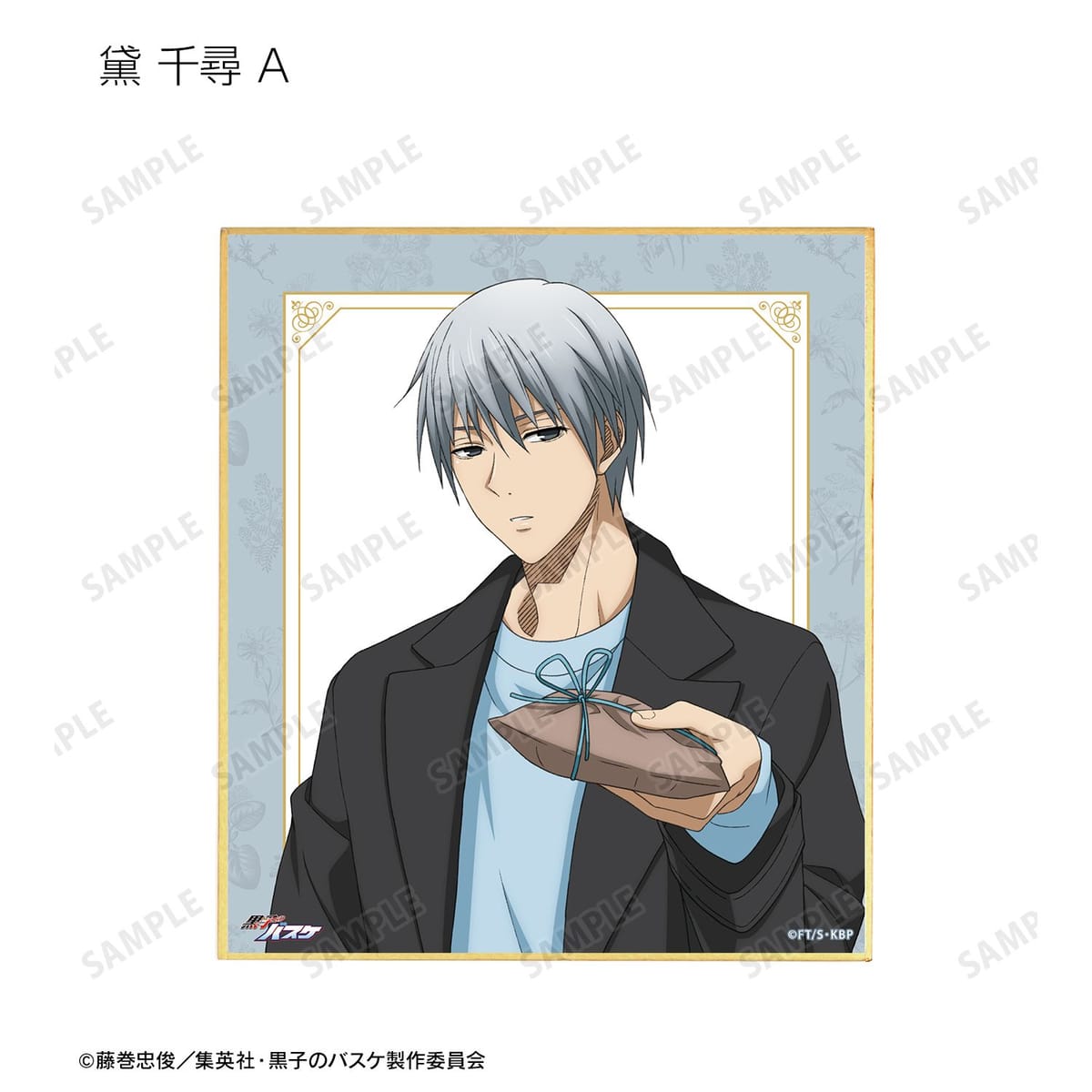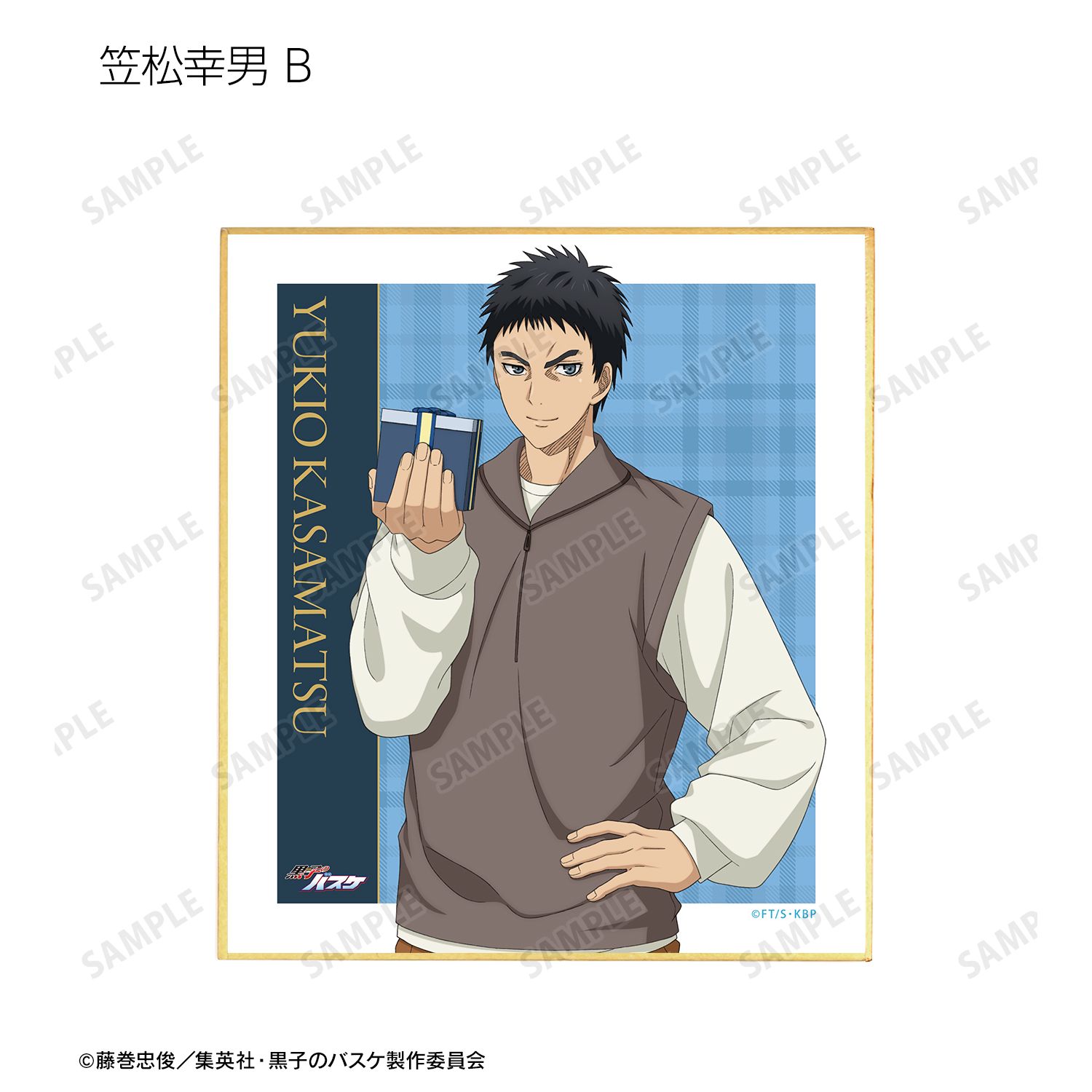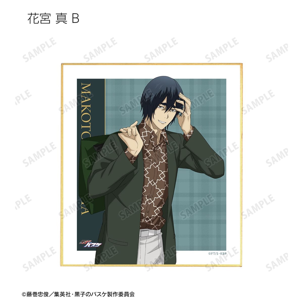 黒子テツヤ、笠松幸男、高尾和成、今吉翔一、氷室辰也、黛 千尋、花宮 真の描き下ろしイラストをミニ色紙に仕上げました。