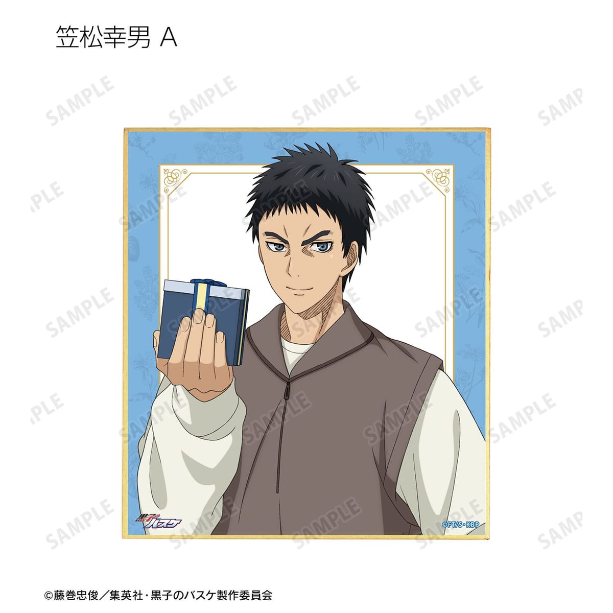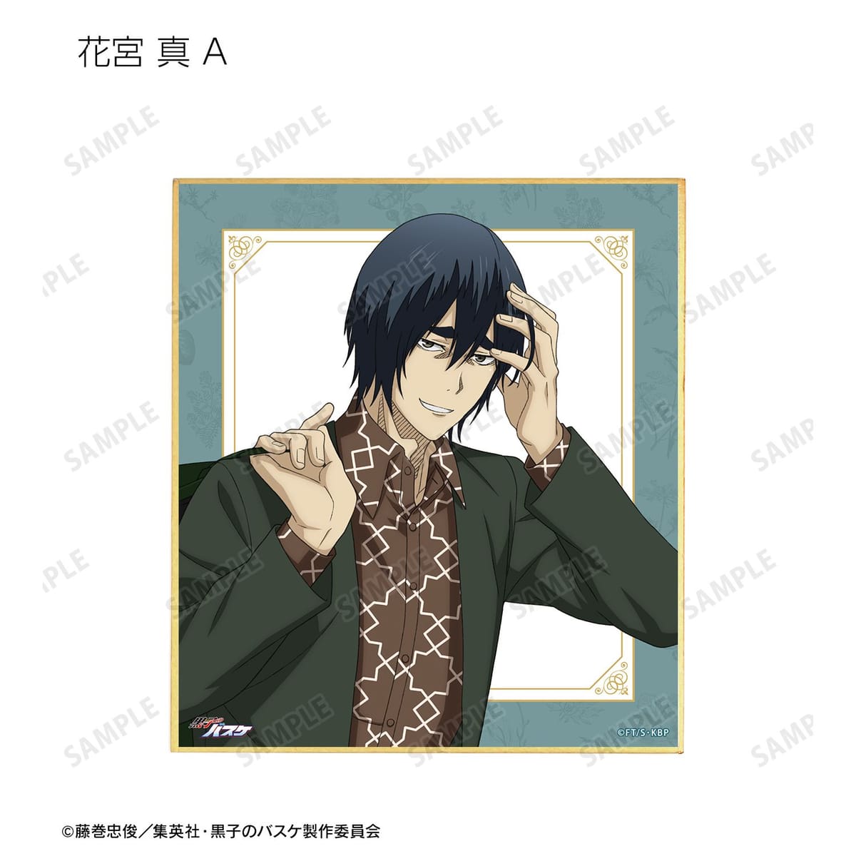 黒子テツヤ、笠松幸男、高尾和成、今吉翔一、氷室辰也、黛 千尋、花宮 真の描き下ろしイラストをミニ色紙に仕上げました。