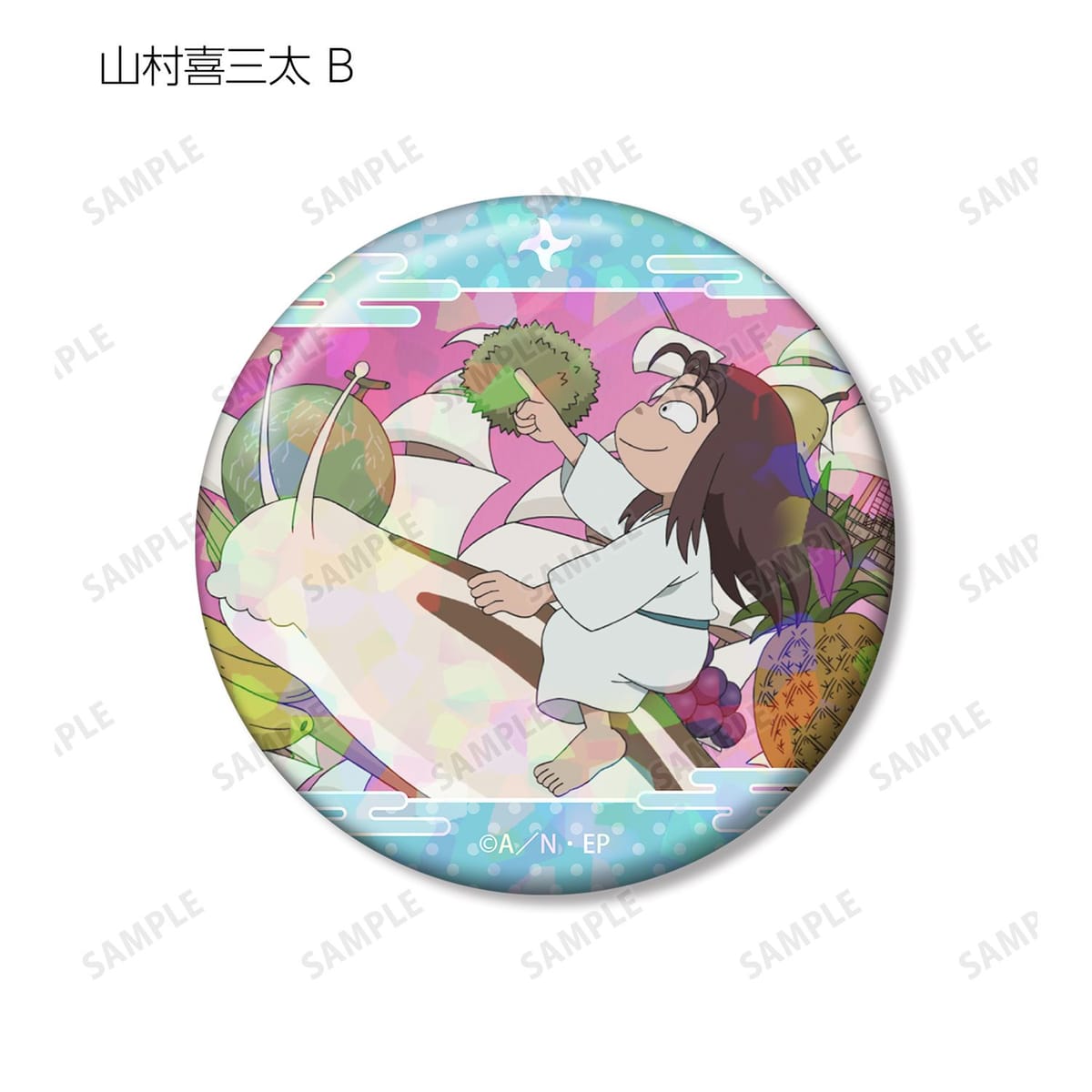 山村喜三太の印象的なシーンをホログラム加工を施した缶バッジ2個セットに仕上げました。