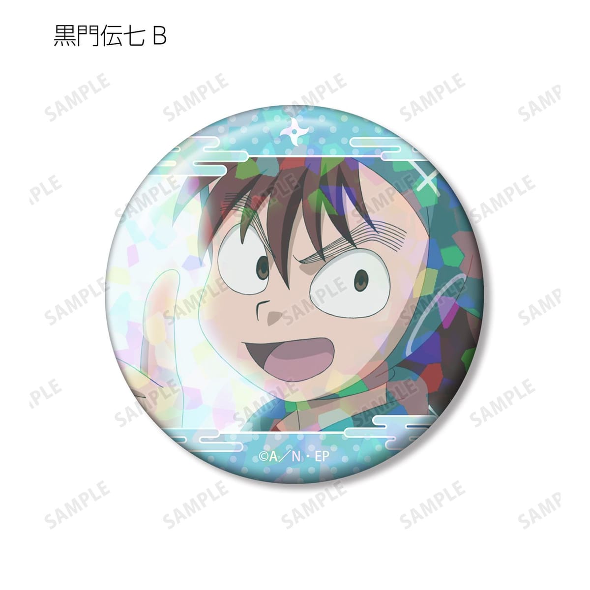 黒門伝七の印象的なシーンをホログラム加工を施した缶バッジ2個セットに仕上げました。