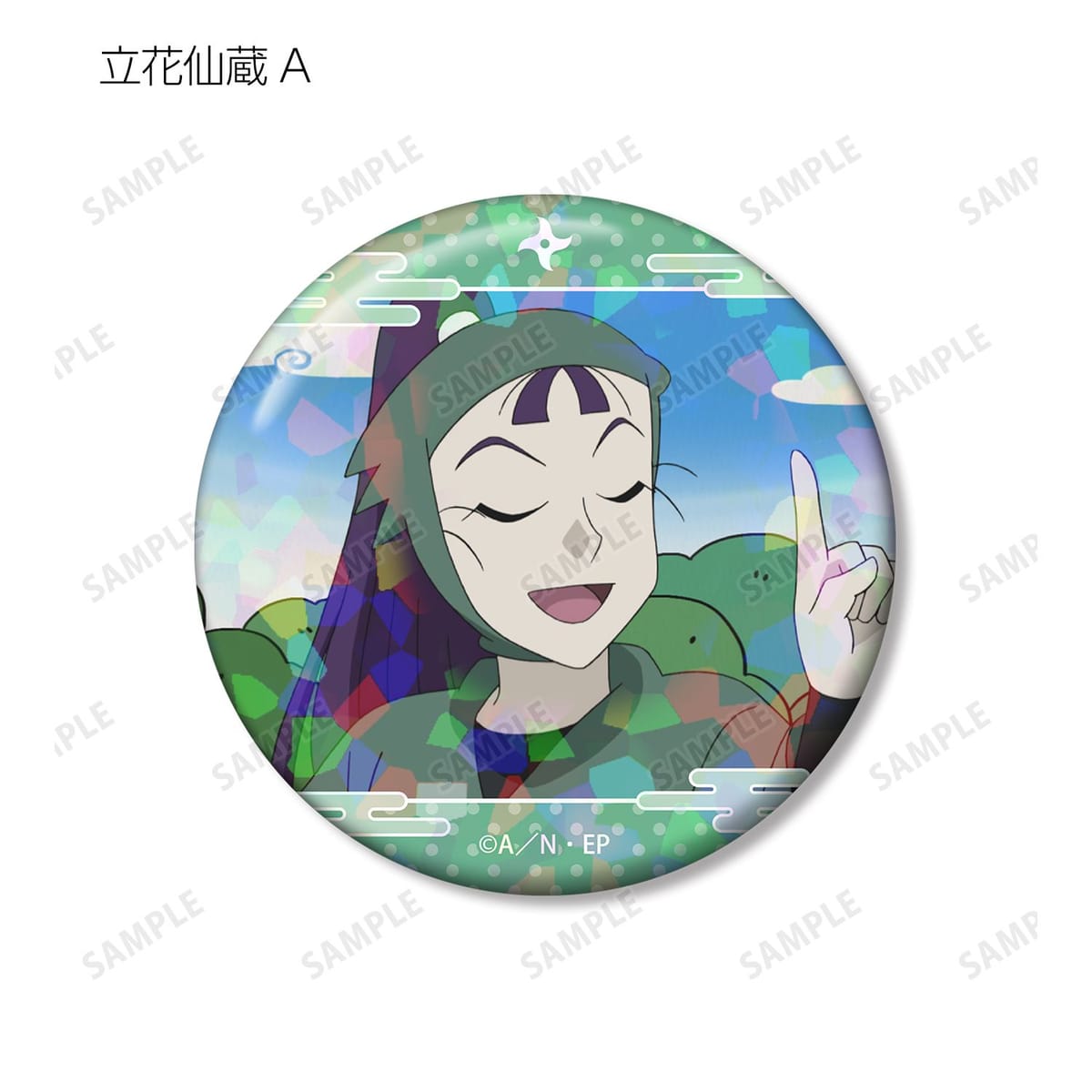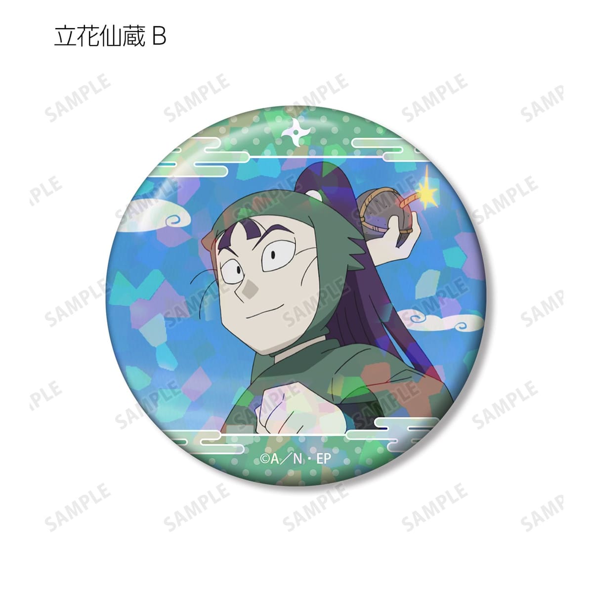 立花仙蔵の印象的なシーンをホログラム加工を施した缶バッジ2個セットに仕上げました。