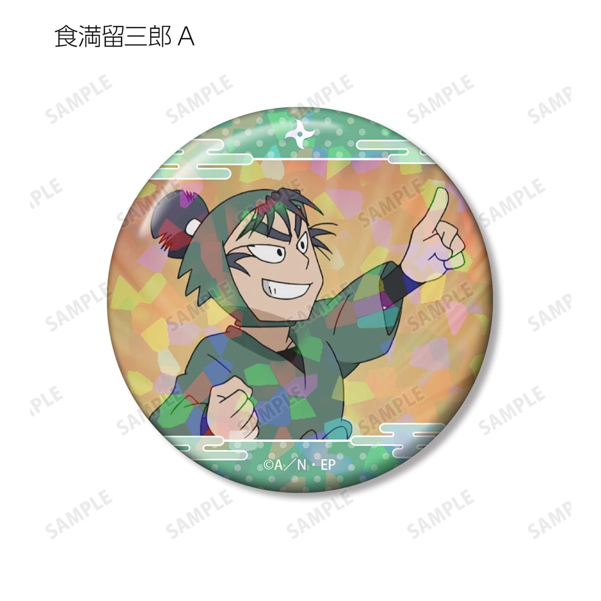 食満留三郎の印象的なシーンをホログラム加工を施した缶バッジ2個セットに仕上げました。