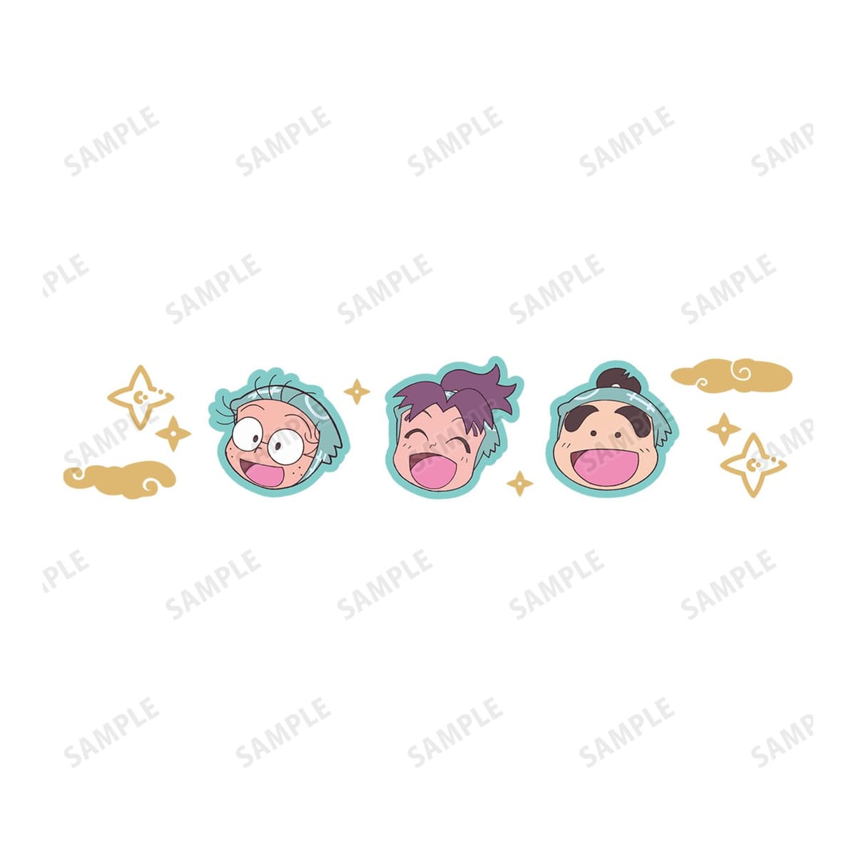 猪名寺乱太郎、摂津のきり丸、福富しんベヱのミニキャライラスト、各キャラクターのモチーフをチークブラシに仕上げました。