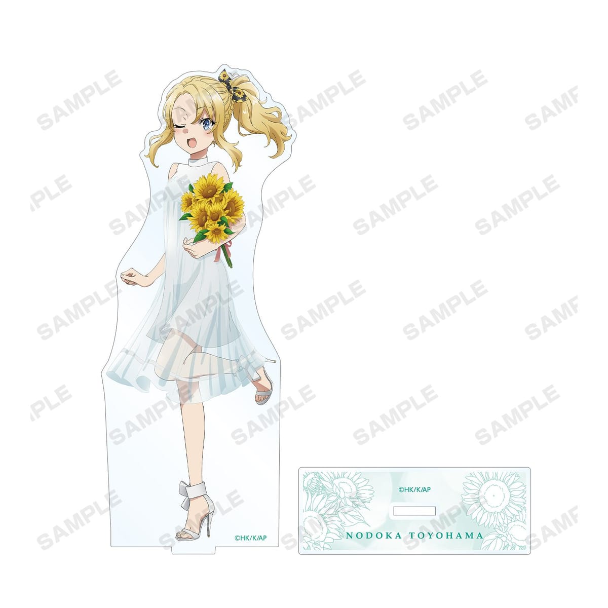 アニメイトで開催された「『青春ブタ野郎はバニーガール先輩の夢を見ない』サマーフェア 2021 in アニメイト」描き下ろしイラストのひまわりを持った白いワンピース姿の豊浜のどかをBIGなアクリルスタンドに仕上げました。