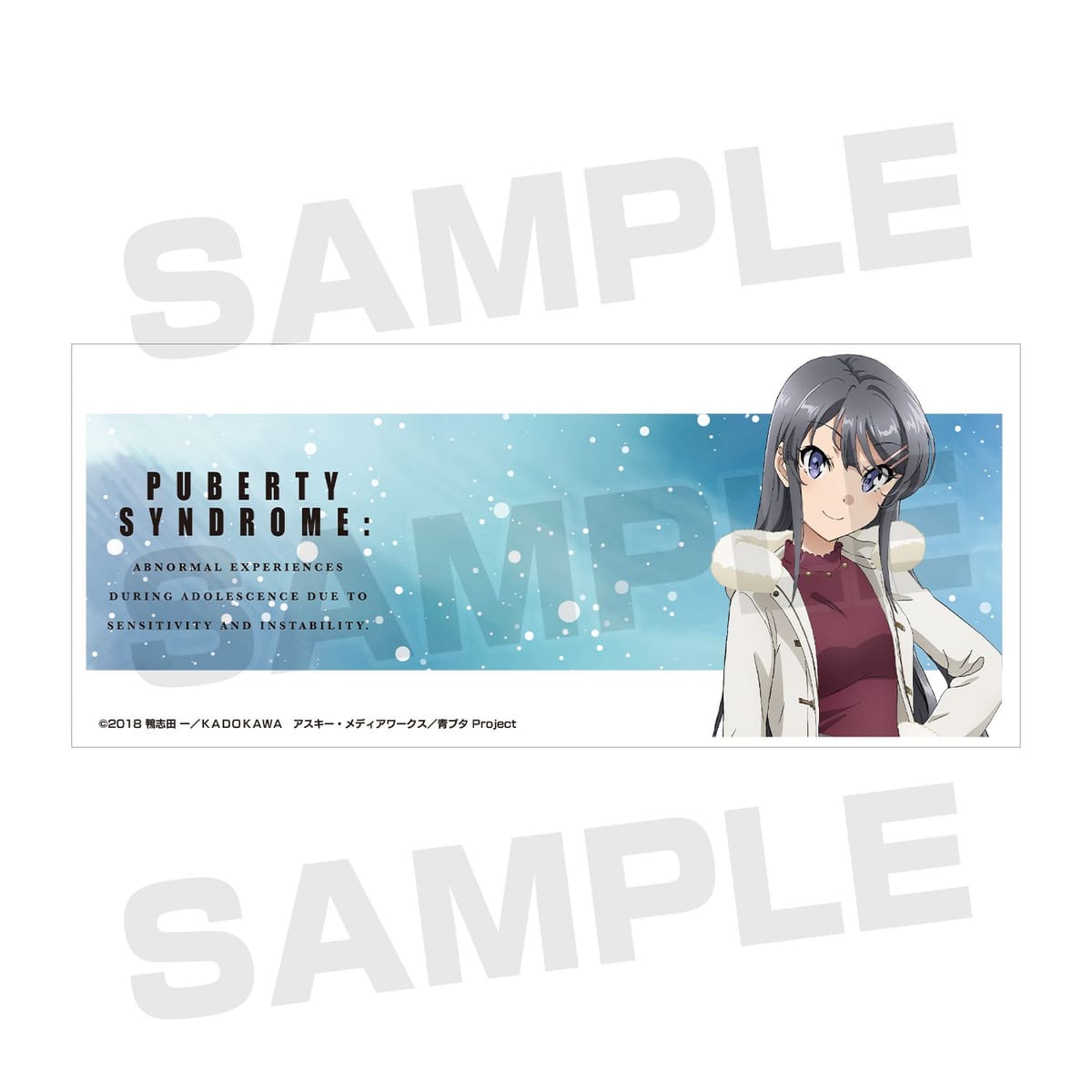 アニメイトで開催された「青春ブタ野郎はバニーガール先輩の夢を見ない POP UP SHOP & キャンペーン in アニメイト」描き下ろしイラストの桜島麻衣を、冬をイメージした水彩調の背景と組み合わせたデザインに仕上げました。