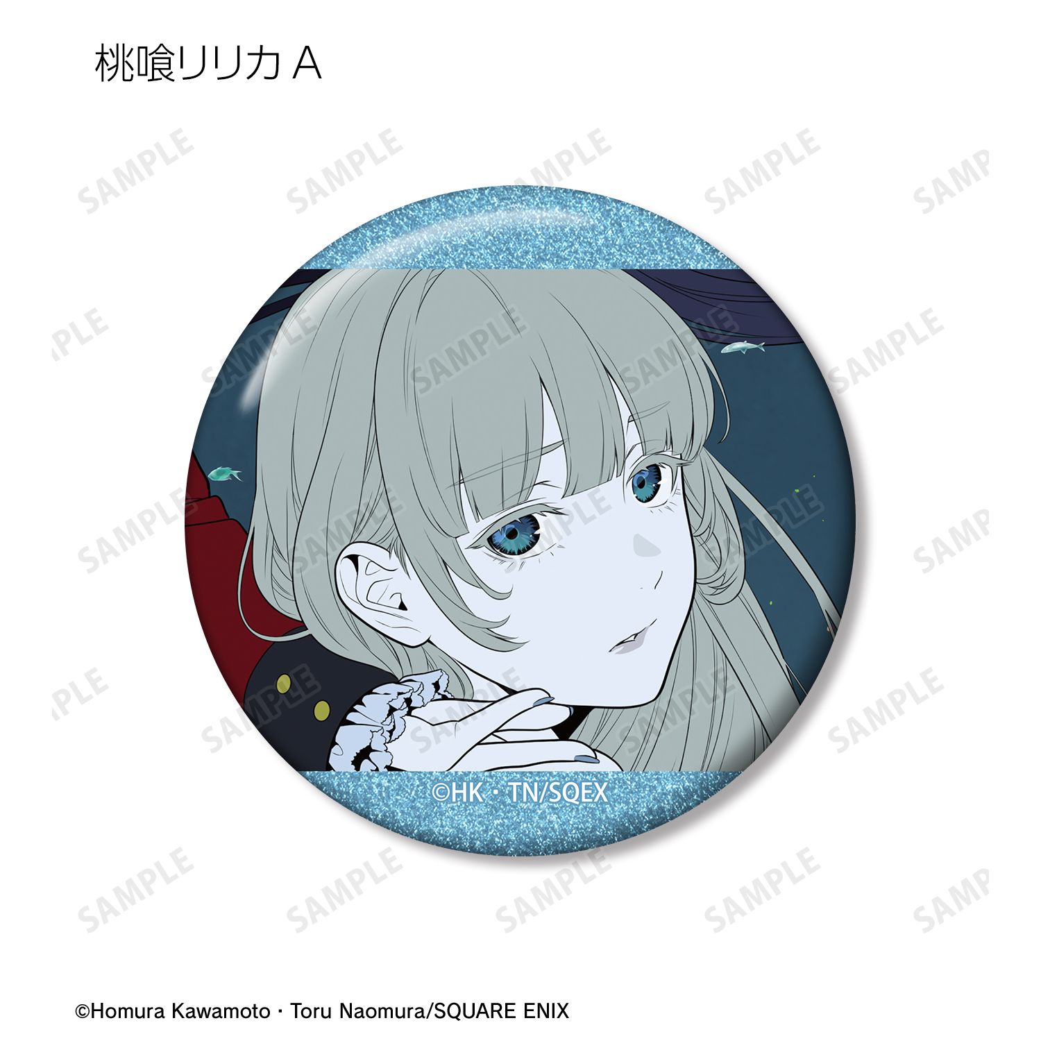蛇喰夢子、桃喰綺羅莉、早乙女芽亜里、桃喰リリカのカラーイラスト、原作コマイラストをグリッター加工を施した缶バッジに仕上げました。