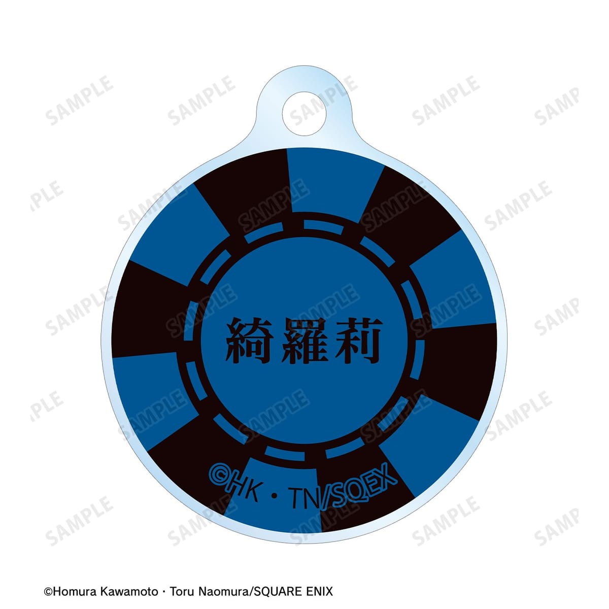 桃喰綺羅莉のカラーイラスト、キャラクターの名前を2連ワイヤーアクリルキーホルダーに仕上げました。