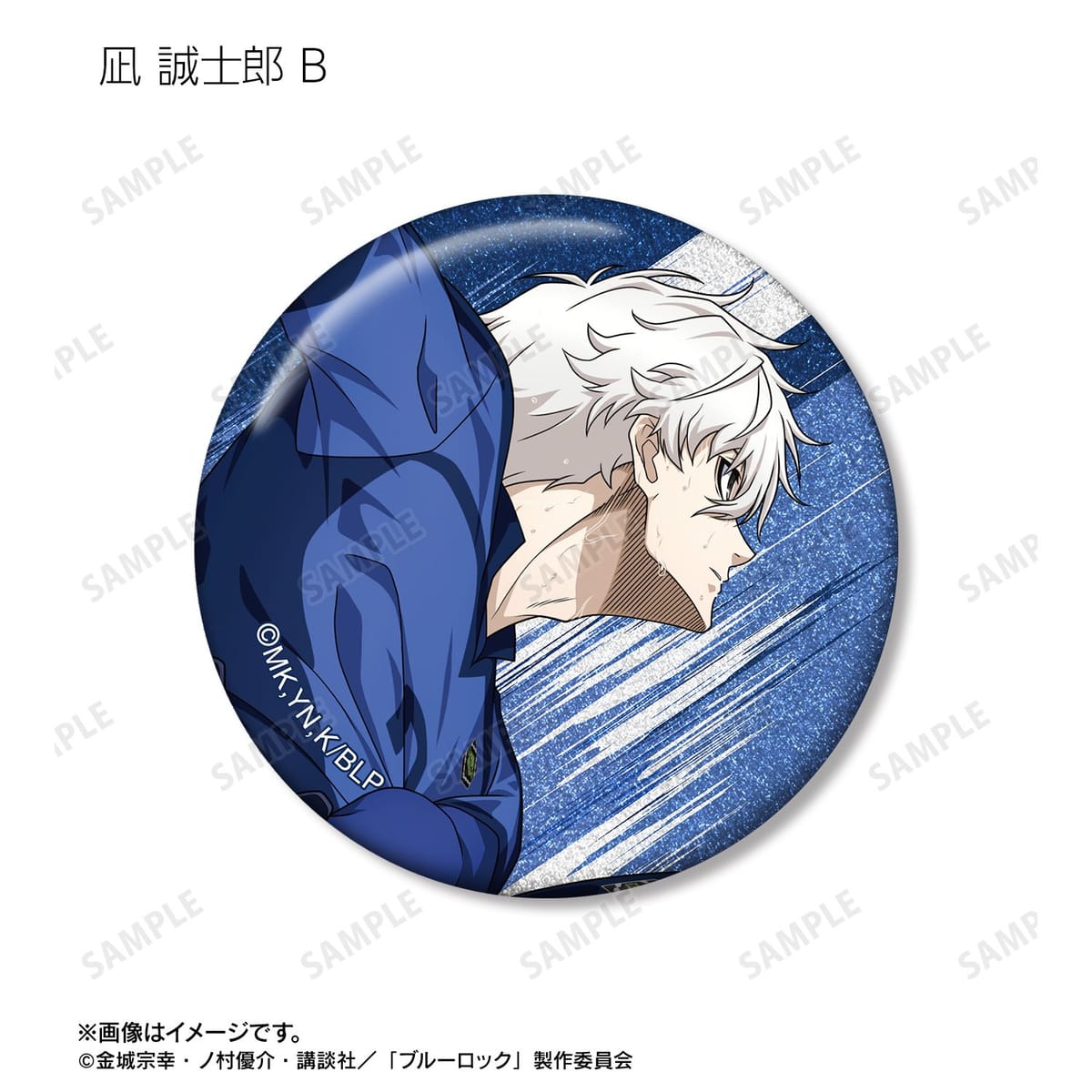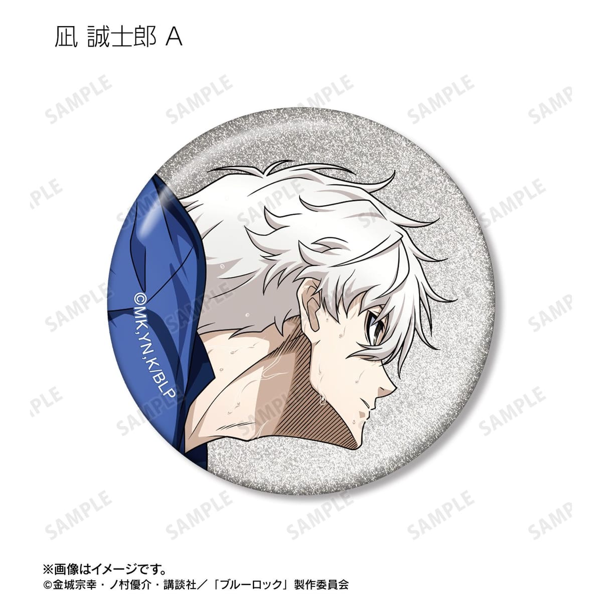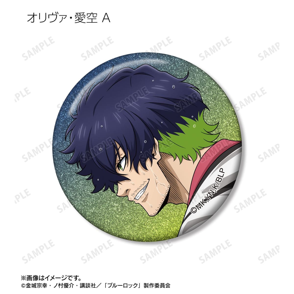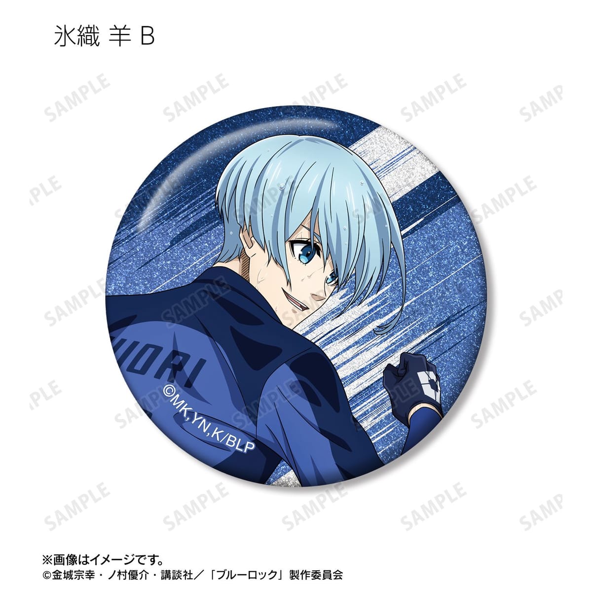 潔 世一、糸師 凛、凪 誠士郎、乙夜 影汰、烏 旅人、御影 玲王、氷織 羊、糸師 冴、オリヴァ・愛空の描き下ろしイラストをグリッター加工を施した缶バッジに仕上げました。