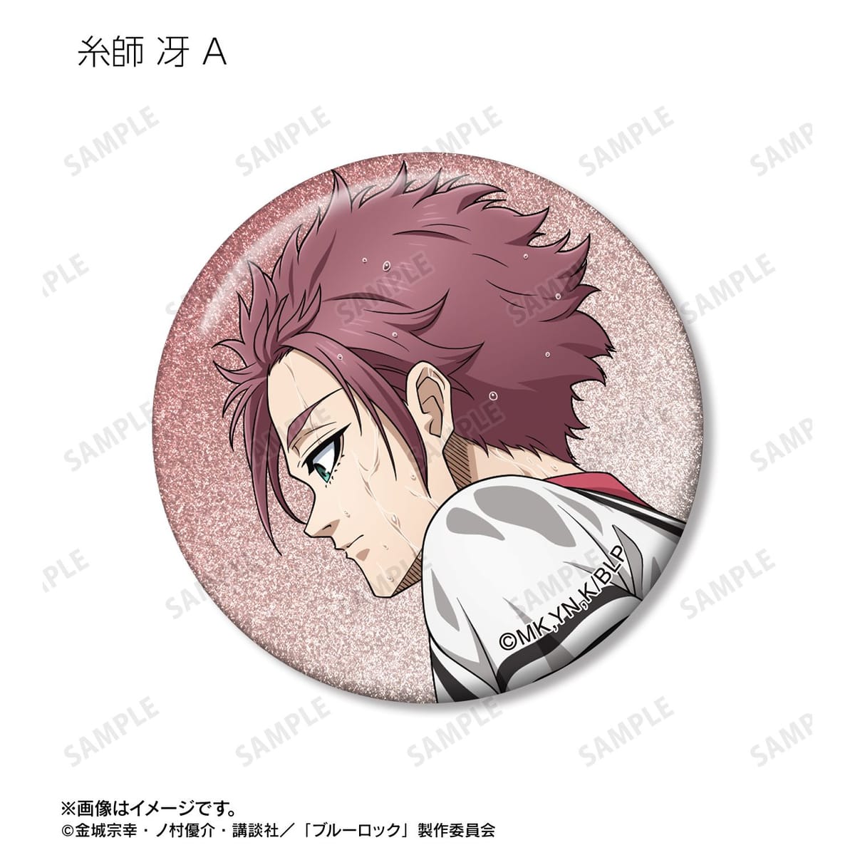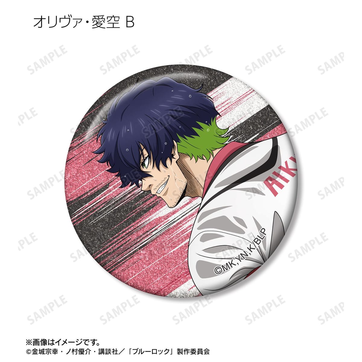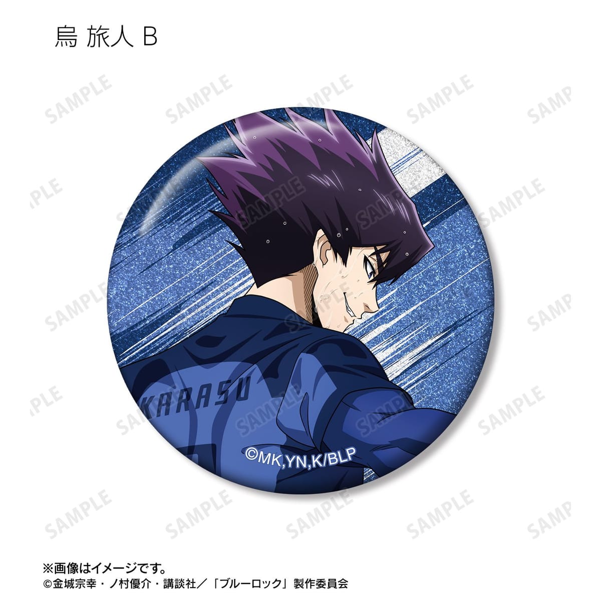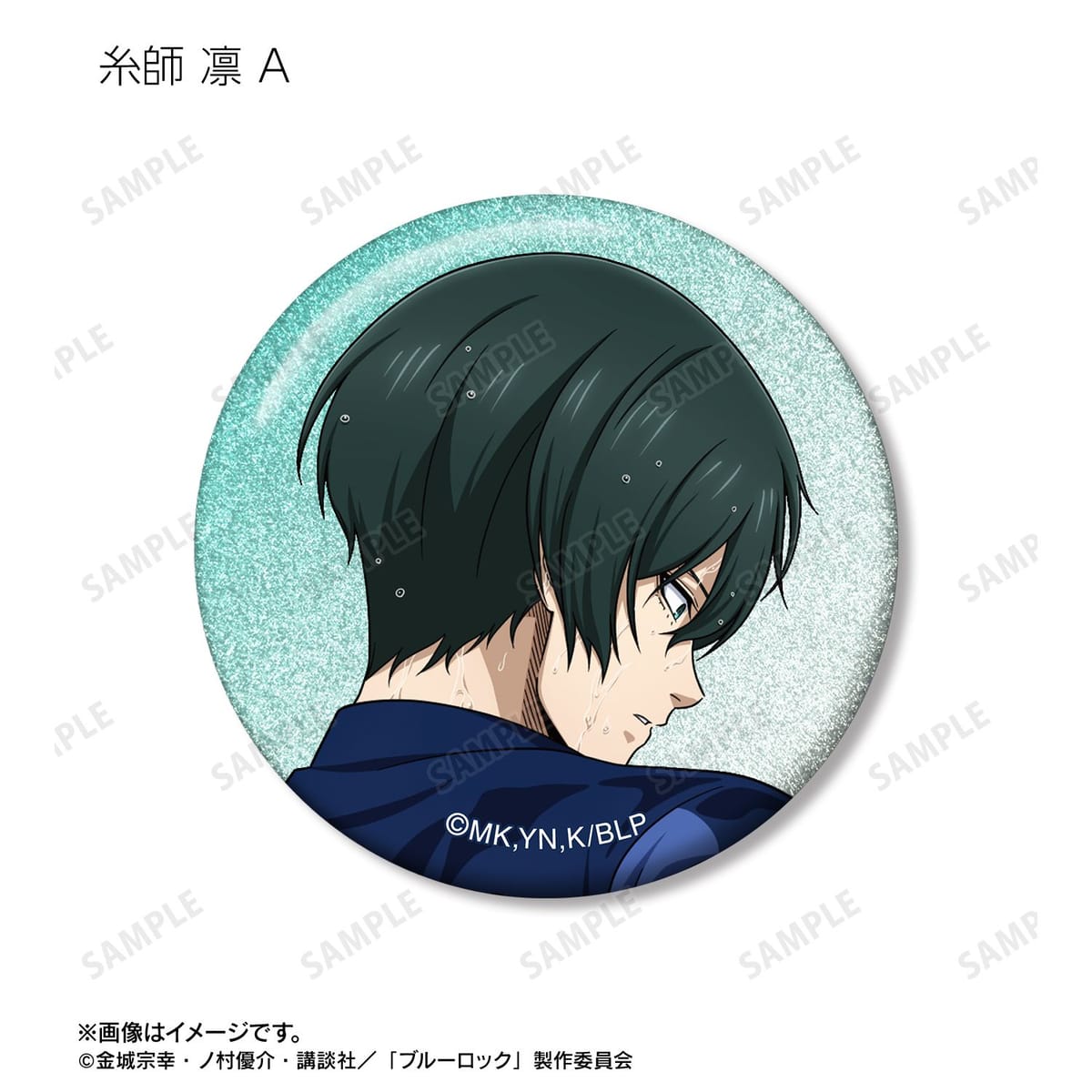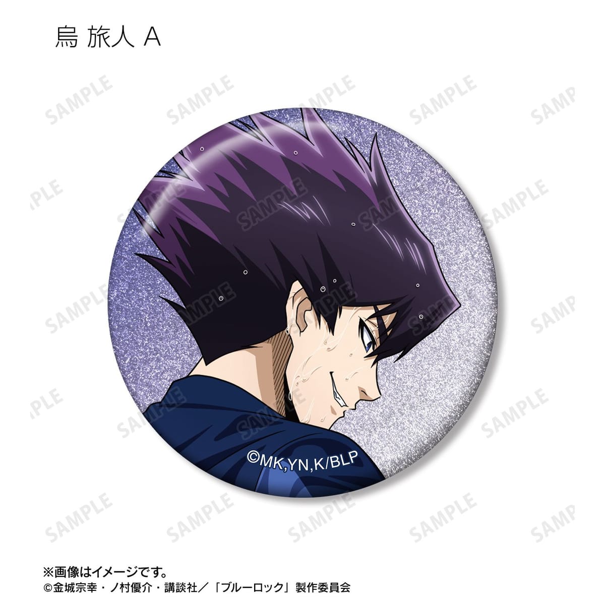 潔 世一、糸師 凛、凪 誠士郎、乙夜 影汰、烏 旅人、御影 玲王、氷織 羊、糸師 冴、オリヴァ・愛空の描き下ろしイラストをグリッター加工を施した缶バッジに仕上げました。