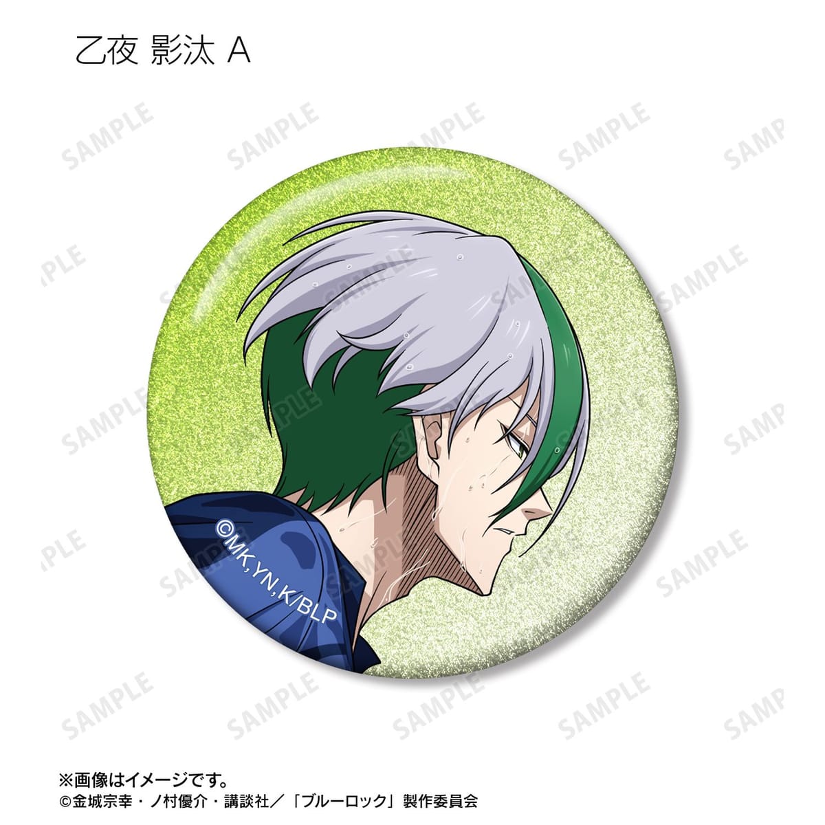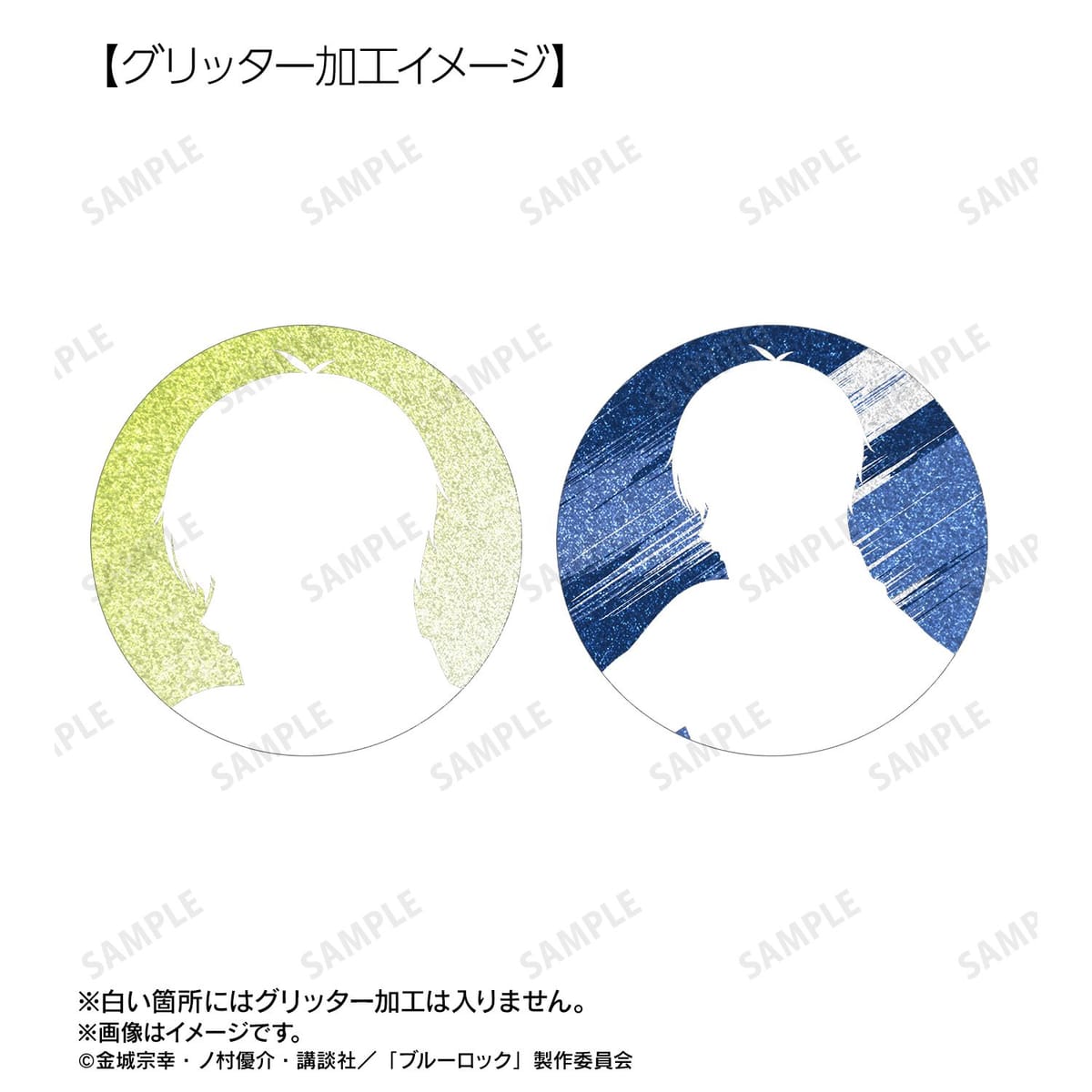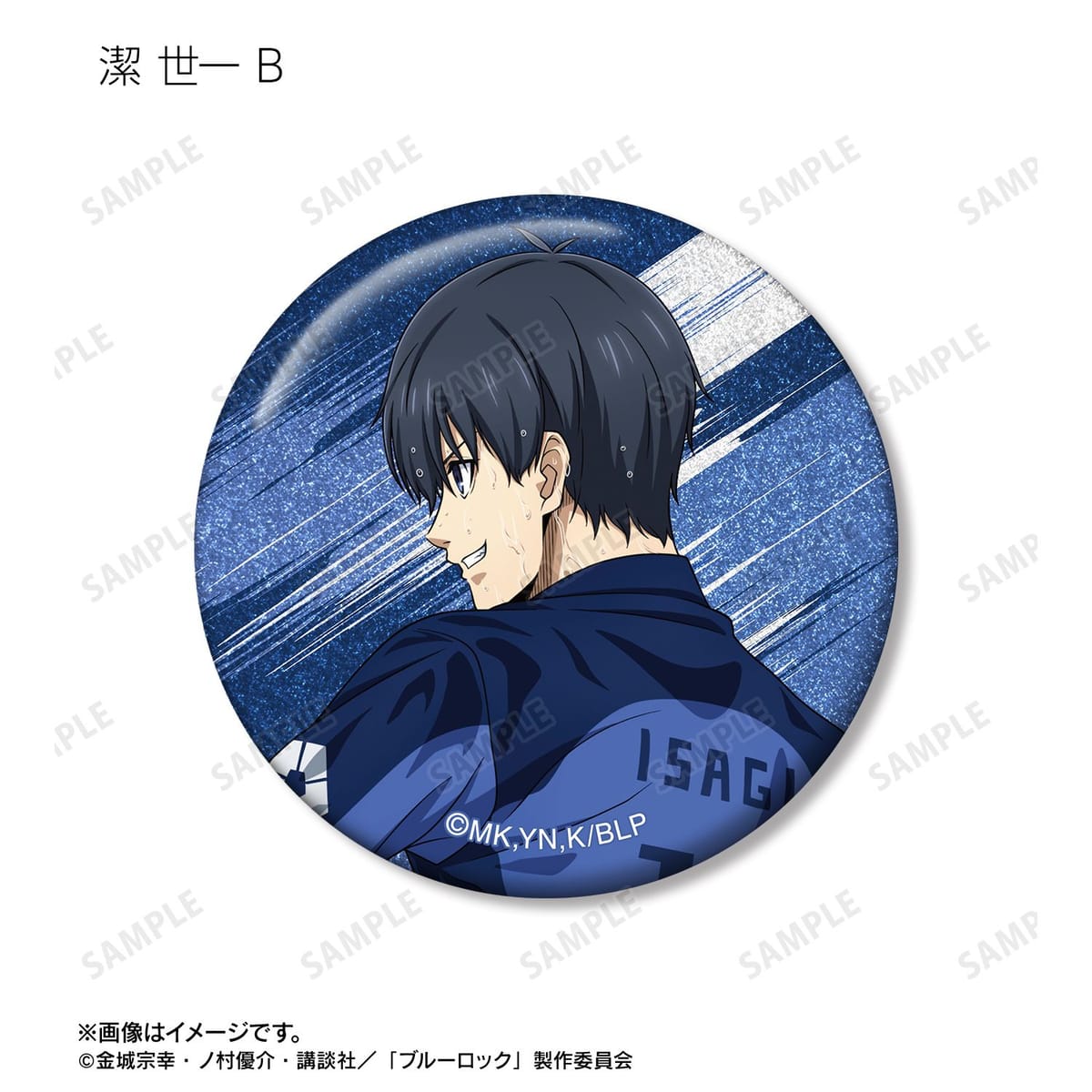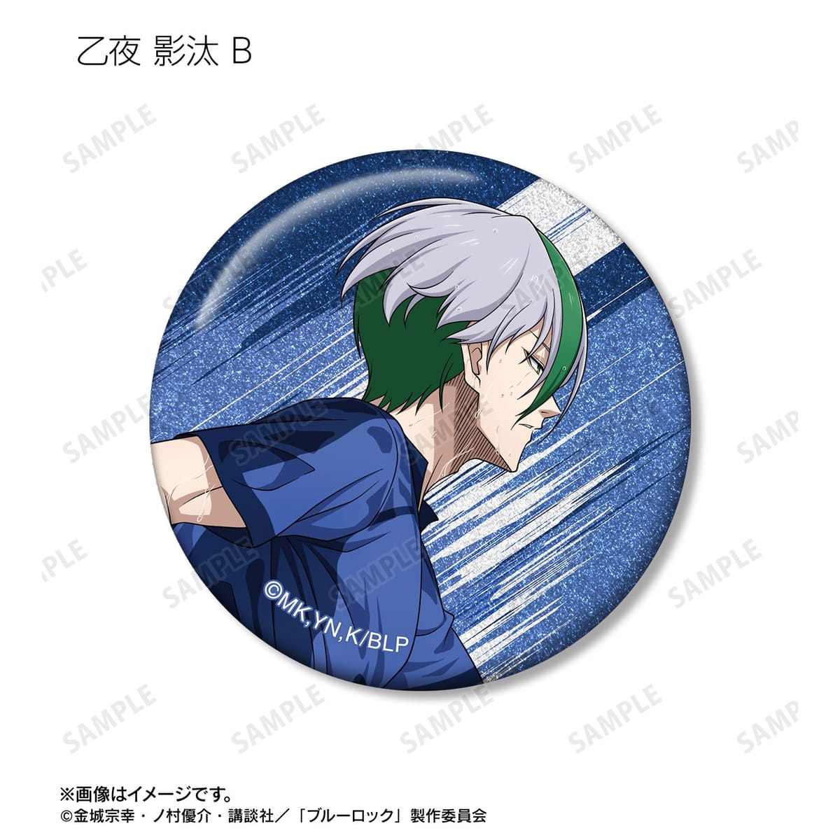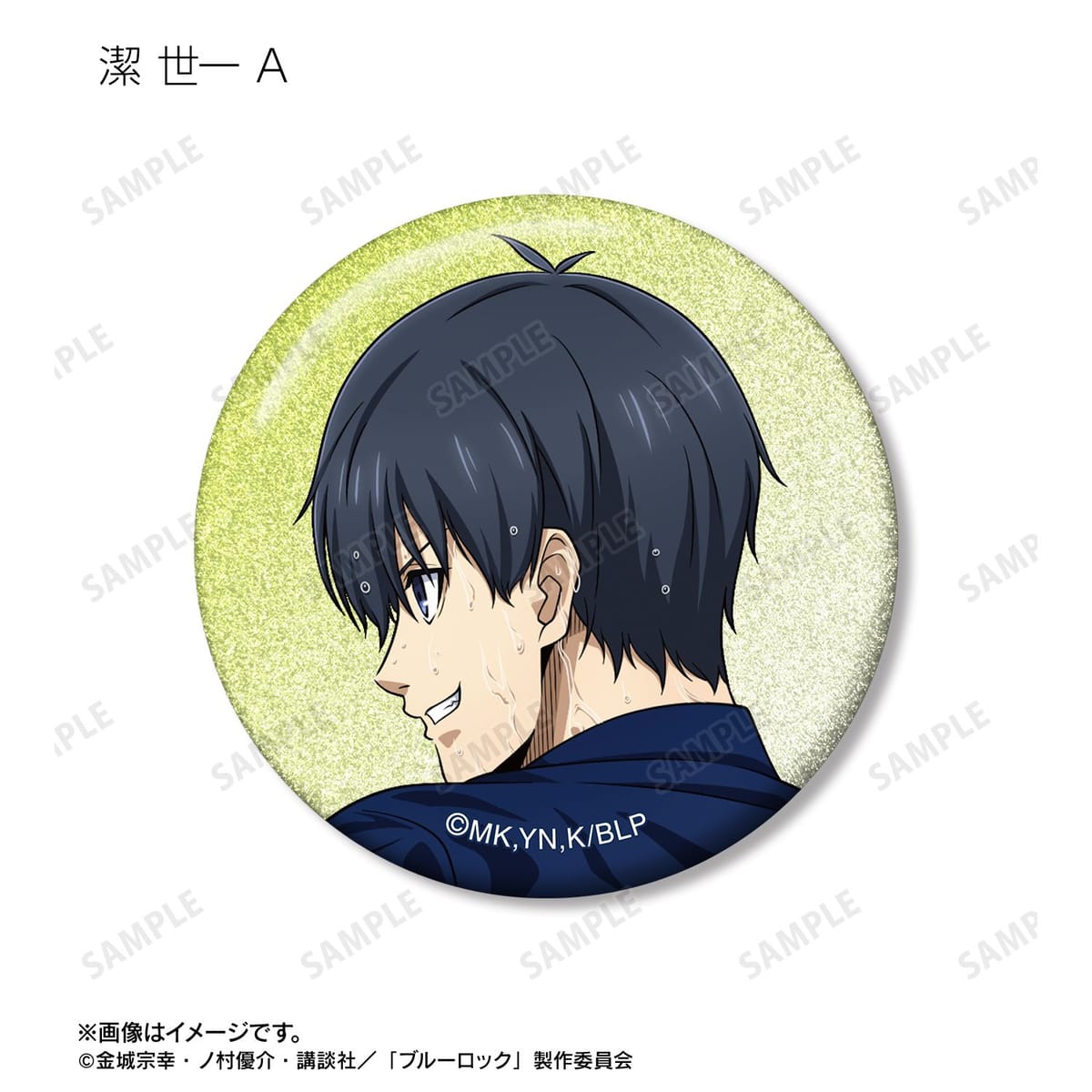 潔 世一、糸師 凛、凪 誠士郎、乙夜 影汰、烏 旅人、御影 玲王、氷織 羊、糸師 冴、オリヴァ・愛空の描き下ろしイラストをグリッター加工を施した缶バッジに仕上げました。