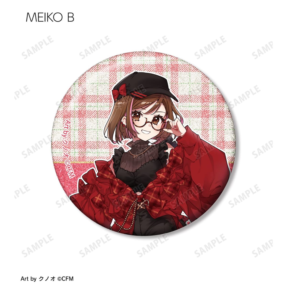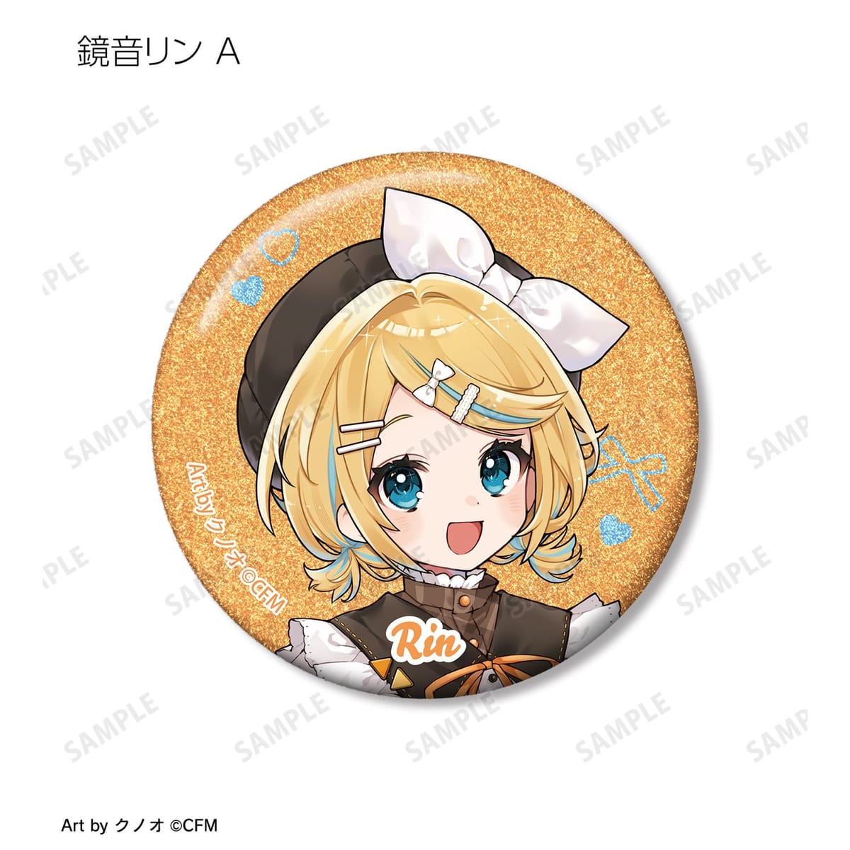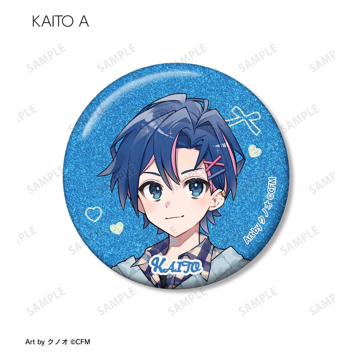 クノオさん描き下ろしイラストの初音ミク、鏡音リン、鏡音レン、巡音ルカ、MEIKO、KAITOをグリッター加工を施した缶バッジに仕上げました。
