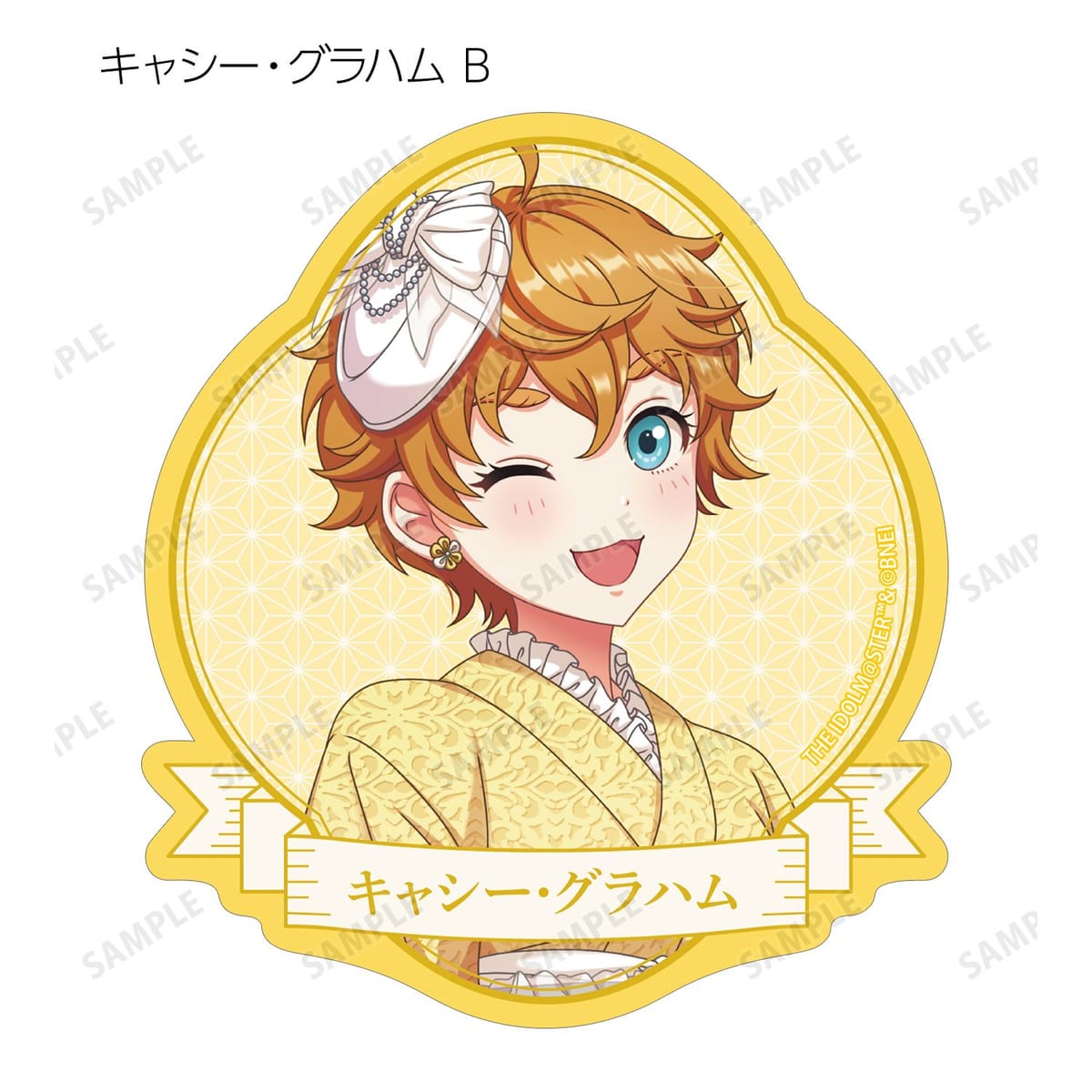 市原仁奈、奥山沙織、キャシー・グラハム、白菊ほたる、高垣楓、鷹富士茄子、福山舞、藤原肇、横山千佳、龍崎薫の描き下ろしイラストをダイカットのステッカーに仕上げました。