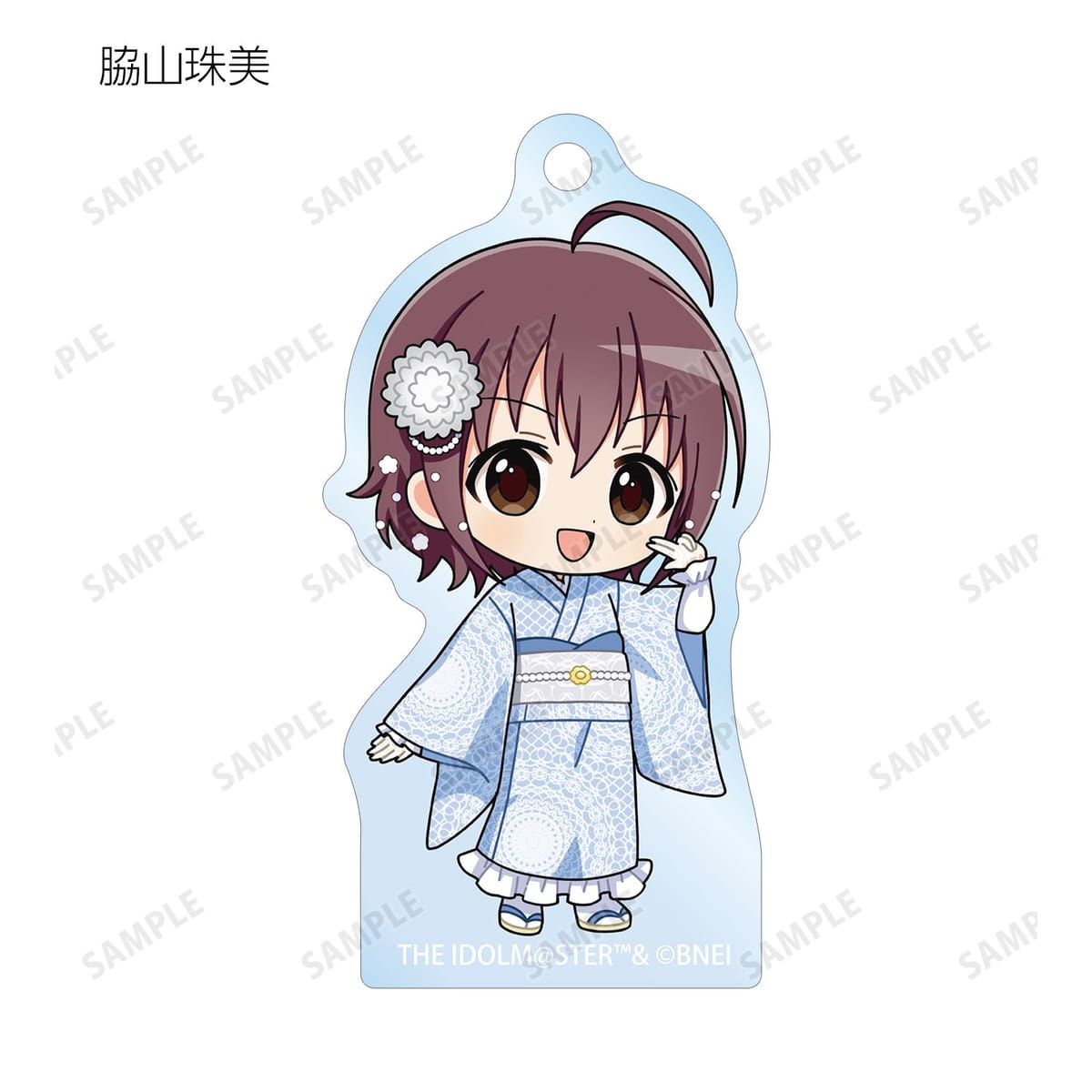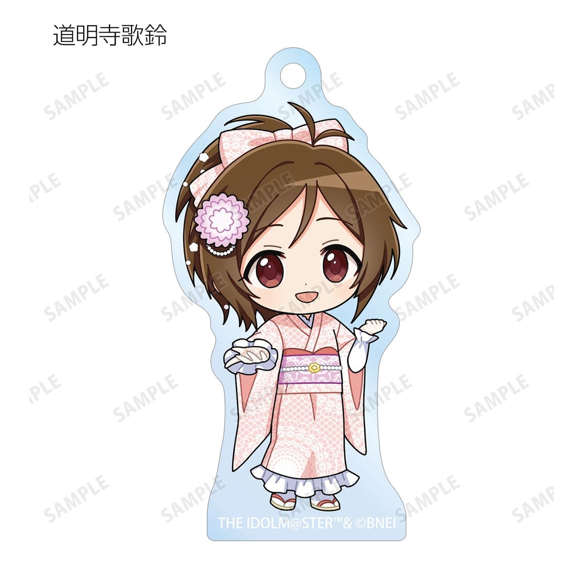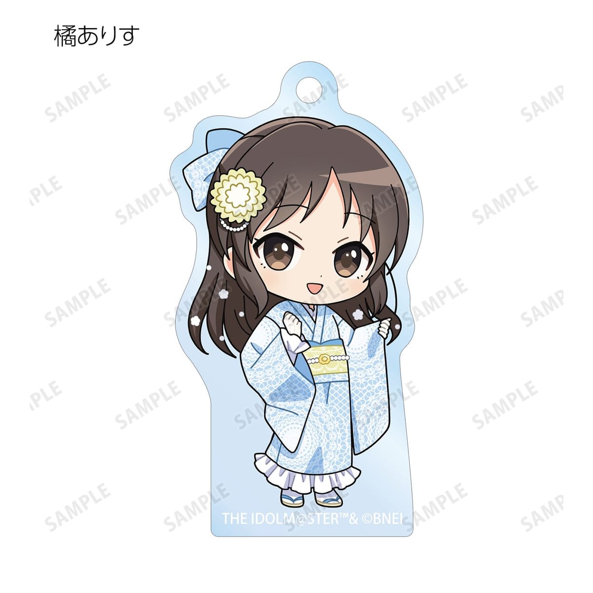 赤西瑛梨華、乙倉悠貴、櫻井桃華、橘ありす、道明寺歌鈴、浜口あやめ、久川凪、久川颯、的場梨沙、依田芳乃、脇山珠美、ぴにゃこら太の描き起こしちびキャライラストをメインにデザインし、アクリルキーホルダーに仕上げました。