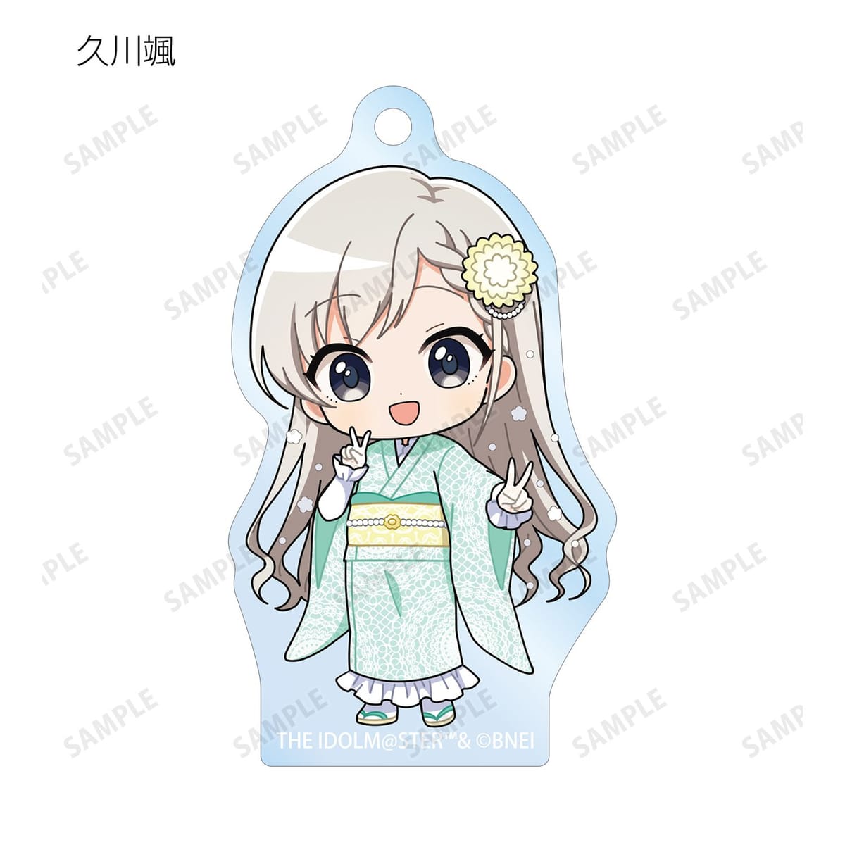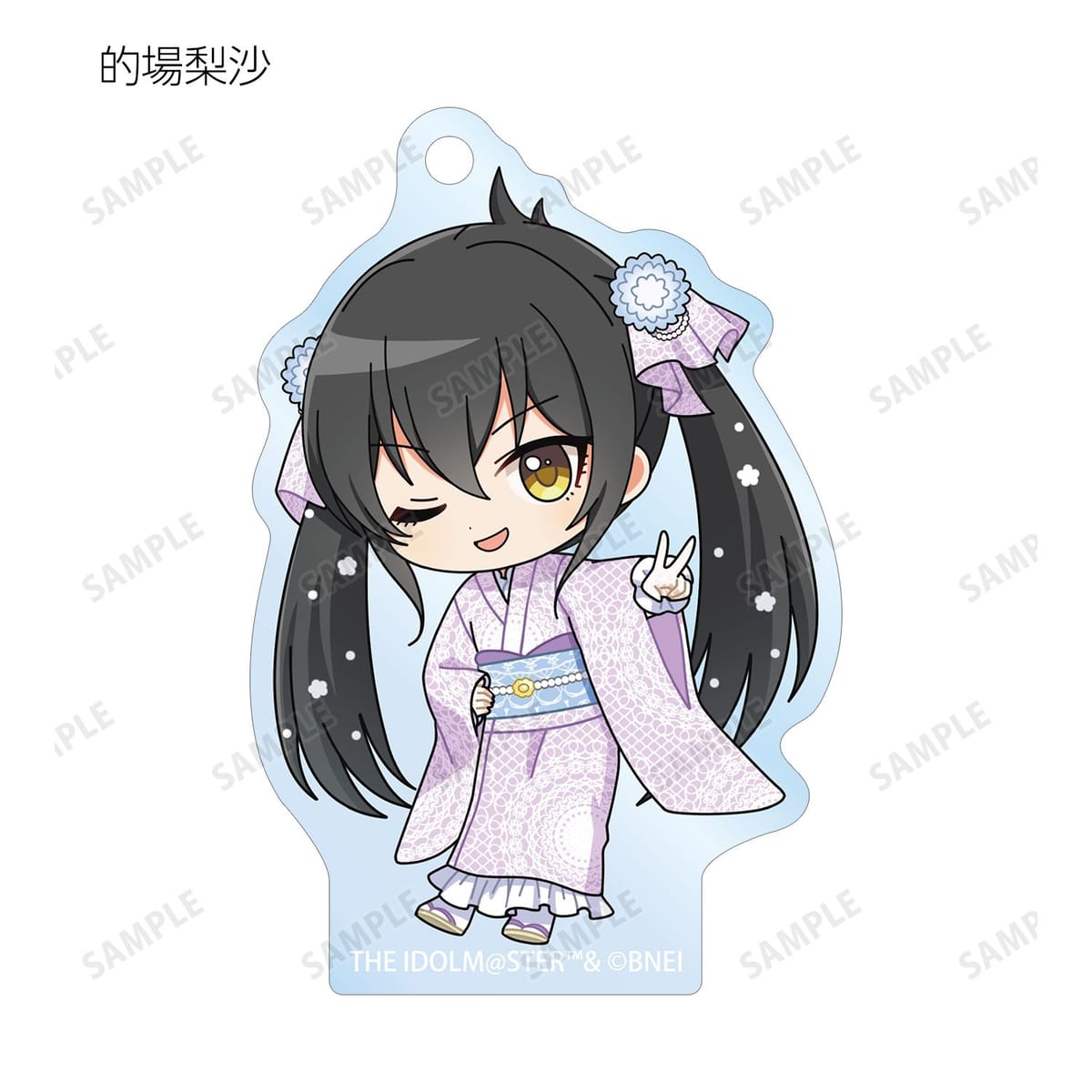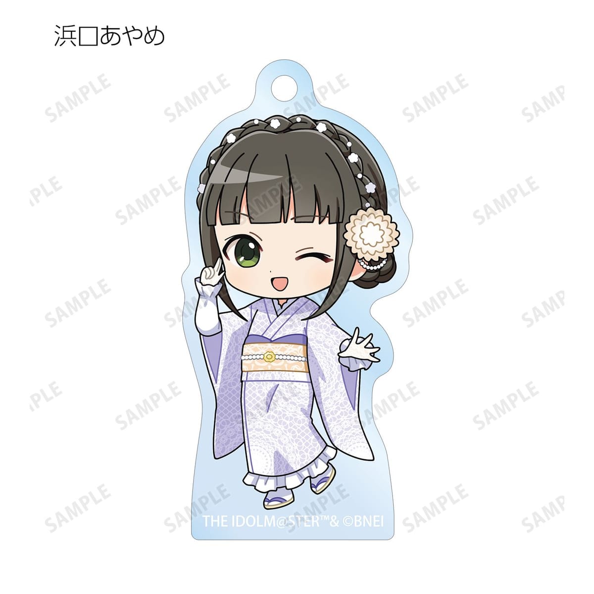 赤西瑛梨華、乙倉悠貴、櫻井桃華、橘ありす、道明寺歌鈴、浜口あやめ、久川凪、久川颯、的場梨沙、依田芳乃、脇山珠美、ぴにゃこら太の描き起こしちびキャライラストをメインにデザインし、アクリルキーホルダーに仕上げました。