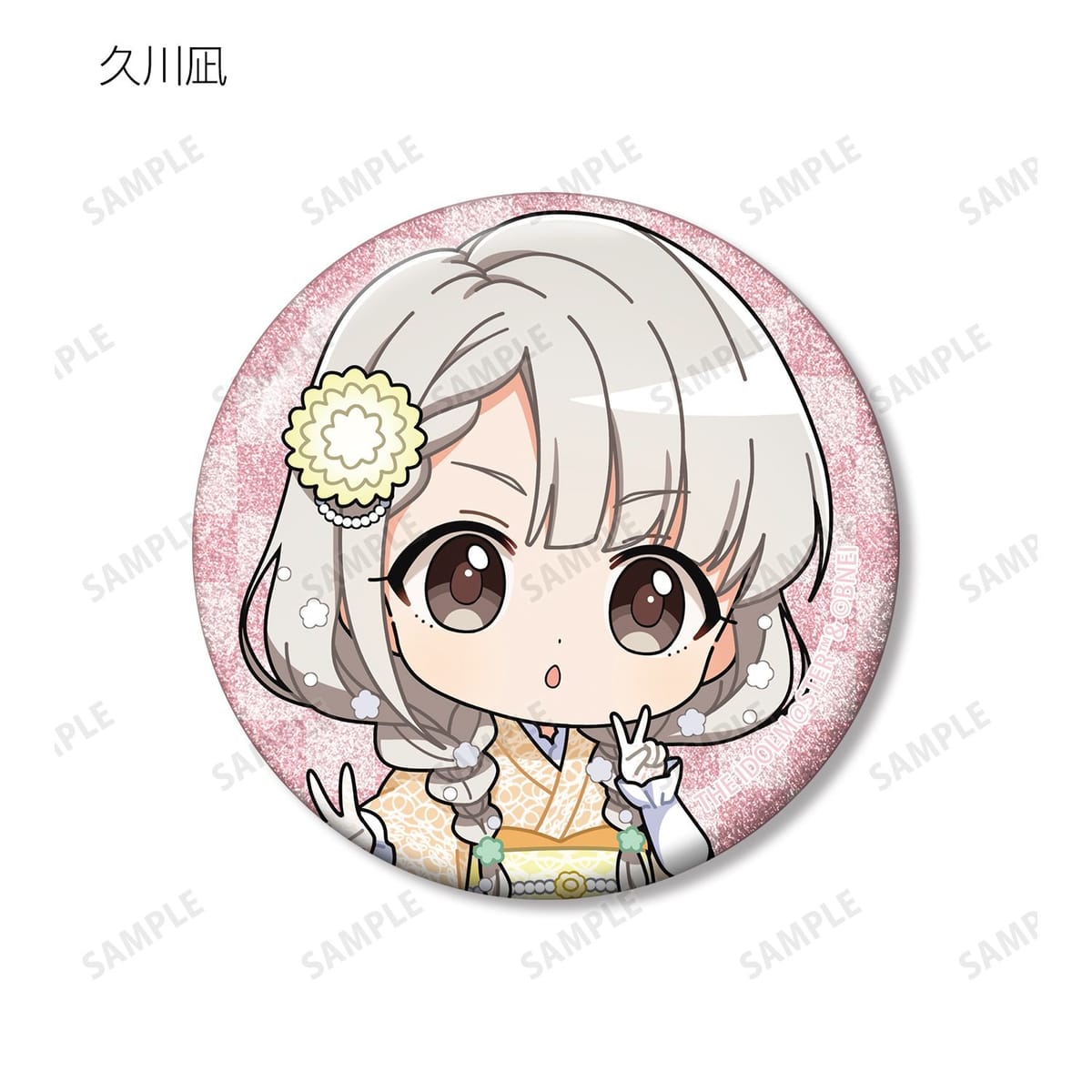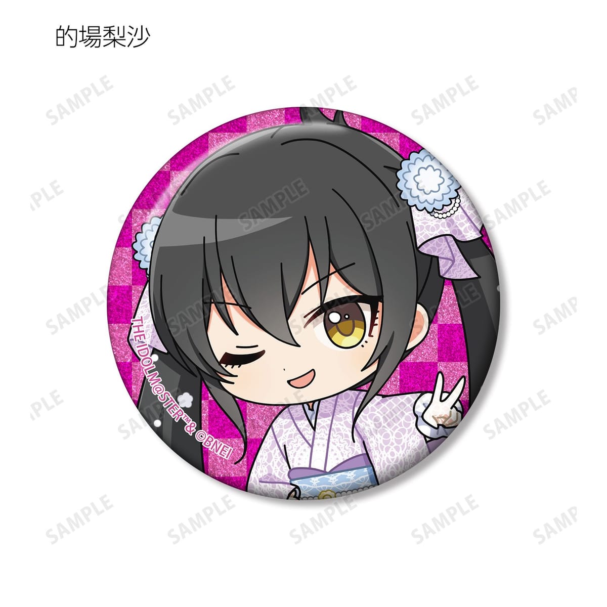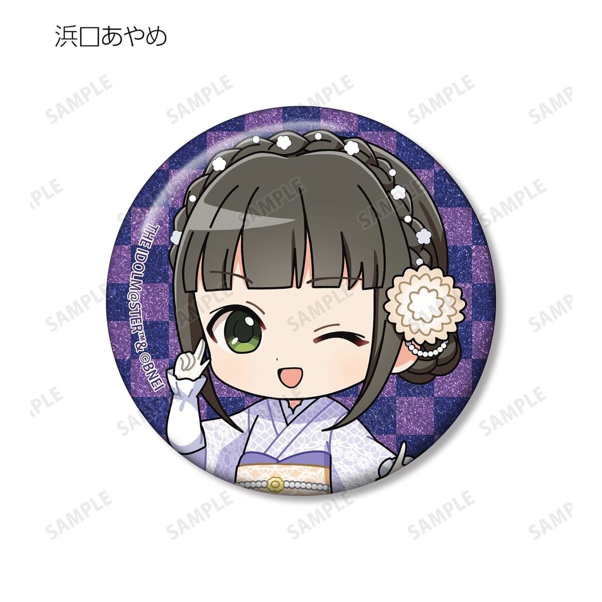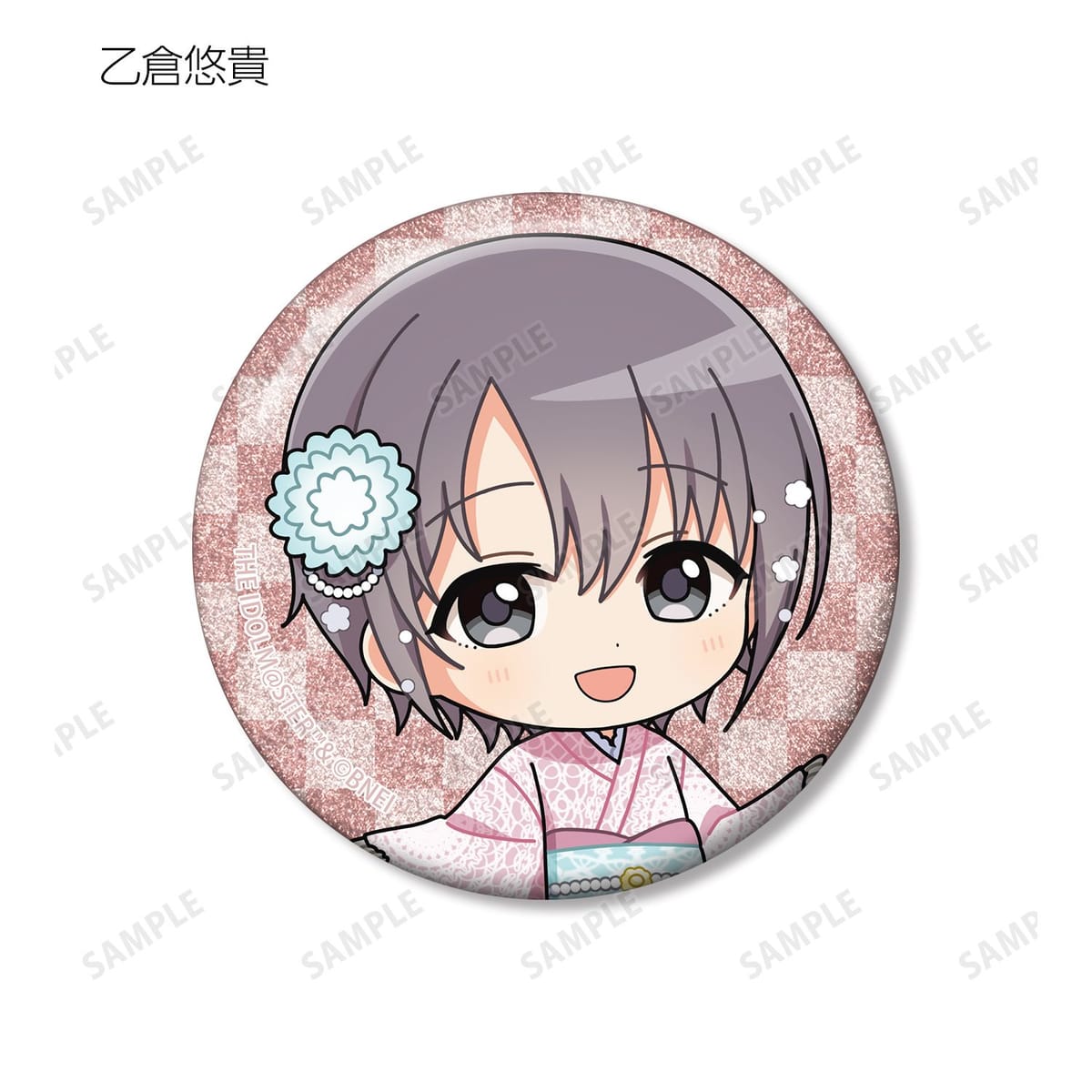 赤西瑛梨華、乙倉悠貴、櫻井桃華、橘ありす、道明寺歌鈴、浜口あやめ、久川凪、久川颯、的場梨沙、依田芳乃、脇山珠美、ぴにゃこら太の描き起こしちびキャライラストをメインにデザインし、グリッター加工を施した缶バッジに仕上げました。