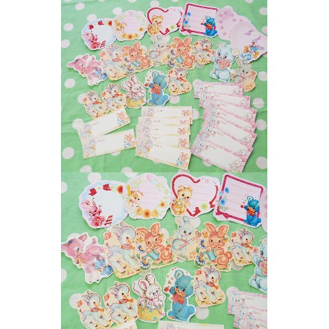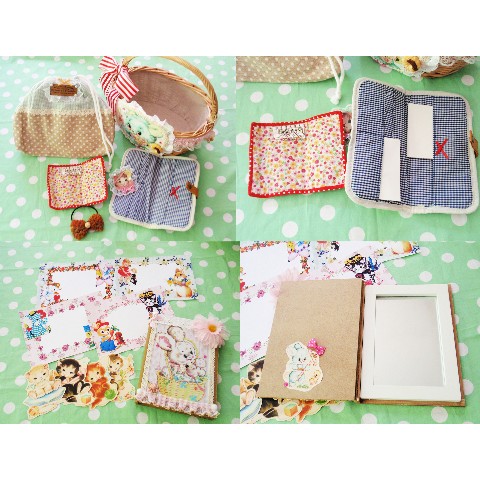 内容;ウサギお花ミラー、アニマルカードケース、巾着、レターセット、ネームシール、メッセージカード&アニマルシール♪