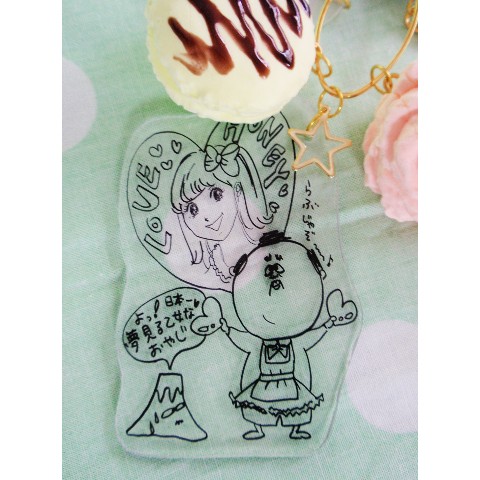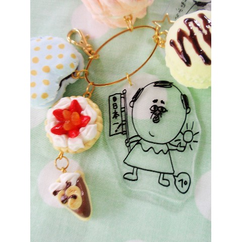 頑張っている団塊世代のおやじをテーマに、可愛くっておいしそうなスイーツとMIXしちゃいました!マカロン、ケーキ、ドーナツの隙間から、愛らしいはげた親父がちらちらこっちを見ています!BAGやお気に入りのアイテムに付けてください★憎めないおやじと一緒に楽しい毎日を!