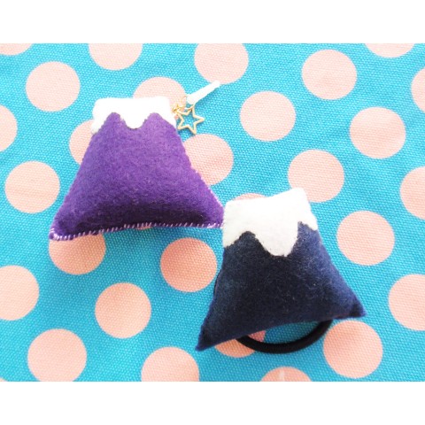 フェルトでチクチク作った、日本の宝!フジサンのヘアゴムとイヤホンジャックのセットです!ちょっとした受け狙いに!かわいくポップに!ぷっくり立体感がある富士山を毎日一緒に使って楽しんでください!ヘアゴムは腕にも付けられるのでアクセとしても使えます!パープルとネイビーの2個セットです!