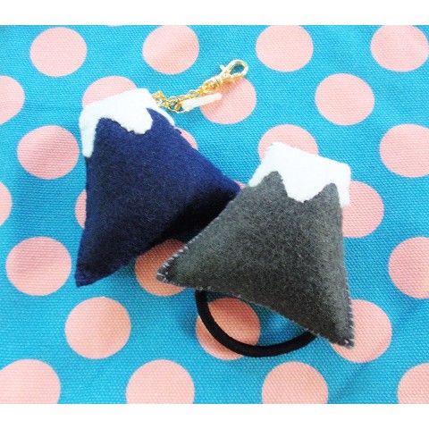 フェルトでチクチク作った、日本の宝!フジサンのヘアゴムとイヤホンジャックのセットです!ちょっとした受け狙いに!かわいくポップに!ぷっくり立体感がある富士山を毎日一緒に使って楽しんでください!ヘアゴムは腕にも付けられるのでアクセとしても使えます!グレーとネイビーの2個セットです!