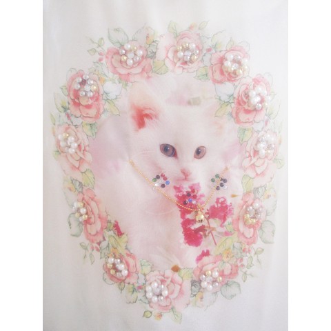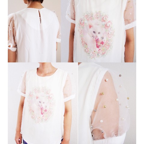 ふんわりホワイトシフォンから魅力的に見える猫デザインがポイント!