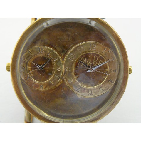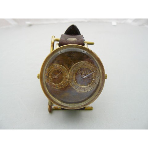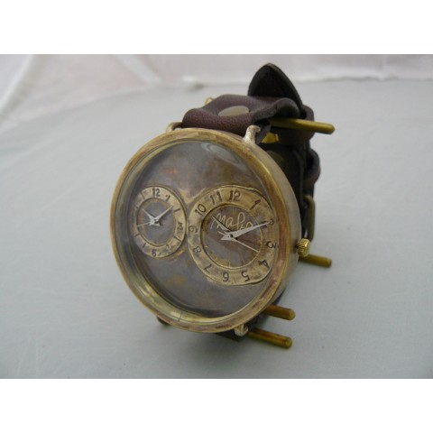 約50mmの特大Brass(真鍮)モデル。文字盤内に2つの時計を組み込んだデュアルタイムモデル。2つの時間帯を別々に表示できるので海外旅行時などに重宝します。そして約5cmの特大サイズでインパクトあるモデルです。 ご注文から制作しますので、お届けまでに約3週間から1か月程お時間を頂きます。