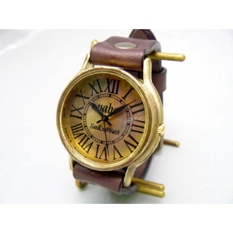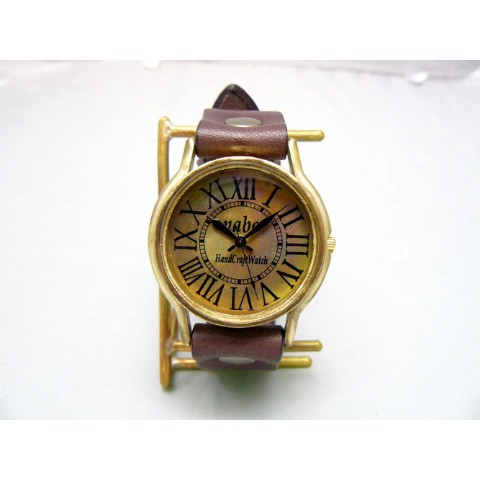 JUMBOサイズBrass(真鍮)モデル。クラシックなローマ数字をプリントした文字盤。ケース・文字盤共にアンティーク感ある古美仕上げです。ケース直径約36mmの大き目サイズで、インパクト大です。リューズをケースに埋め込む様にし、手首への当りを軽減しています。 ご注文から制作しますので、お届けまでに約3週間から1か月程お時間を頂きます。